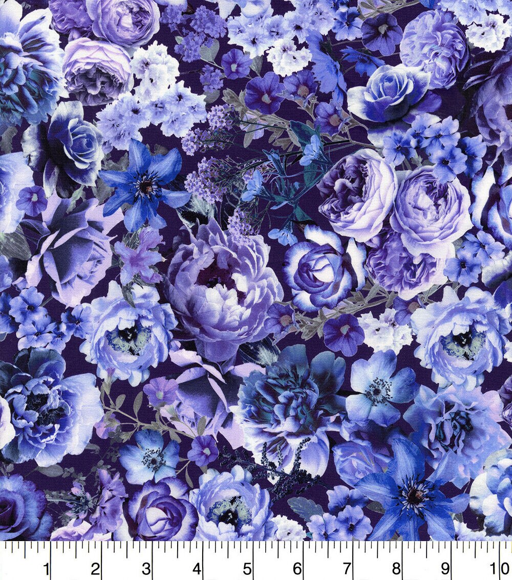 Hi Fashion Blue Floral Dreams Bouquet Premium Cotton Fabric