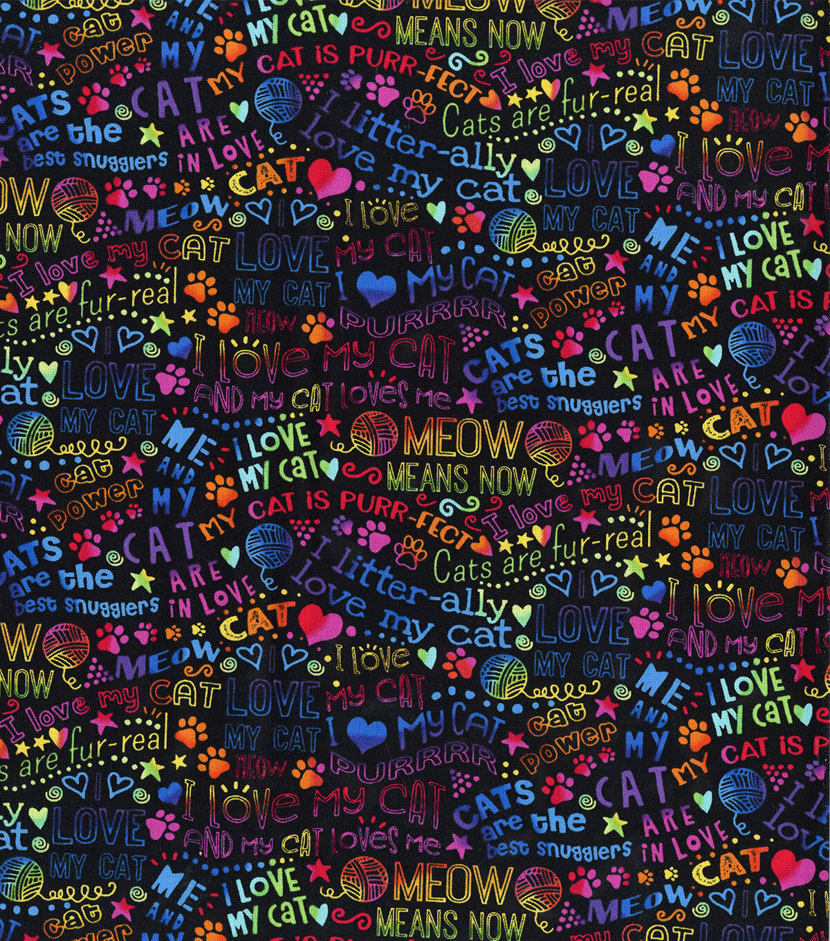 • Hi Fashion Bright Cat Words Novelty Cotton Fabric