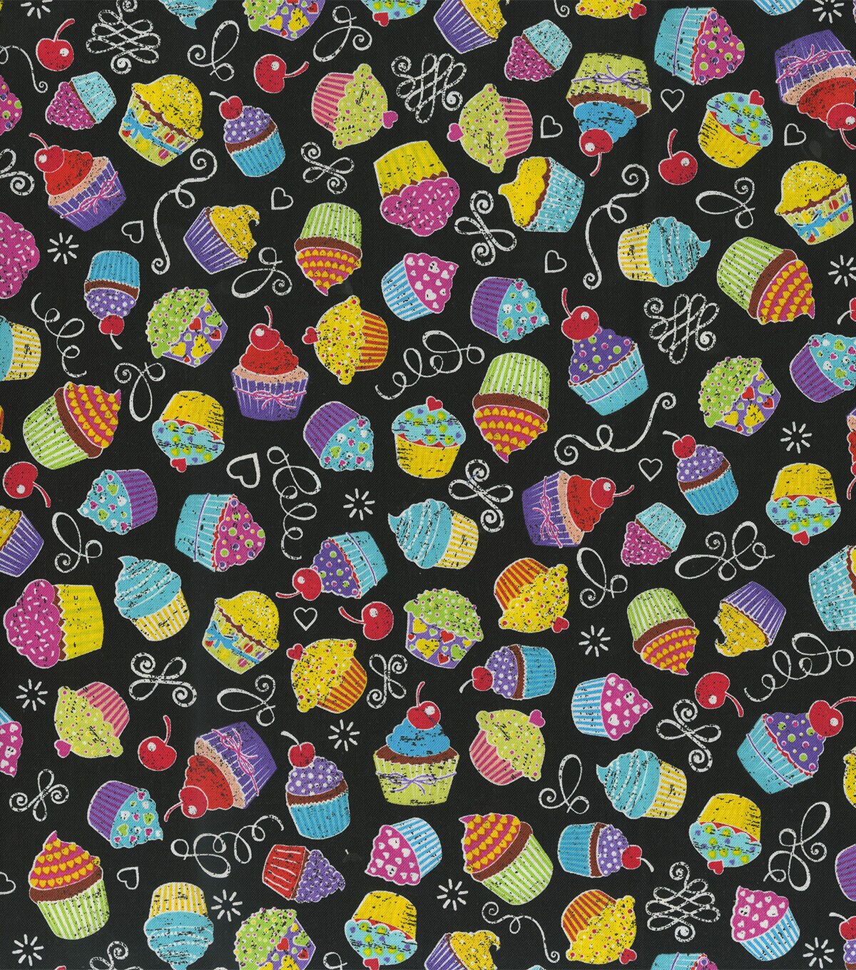• Hi Fashion Chalkboard Cupcakes Novelty Cotton Fabric