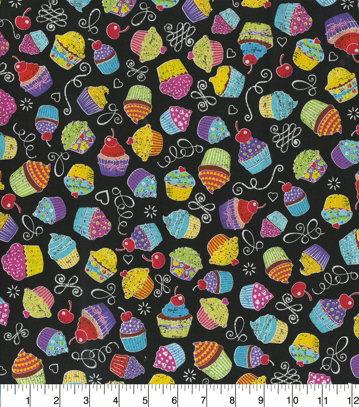 Hi Fashion Chalkboard Cupcakes Novelty Cotton Fabric