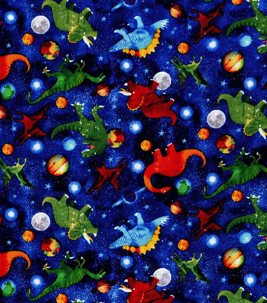 Hi Fashion Dinos In Space Novelty Cotton Fabric