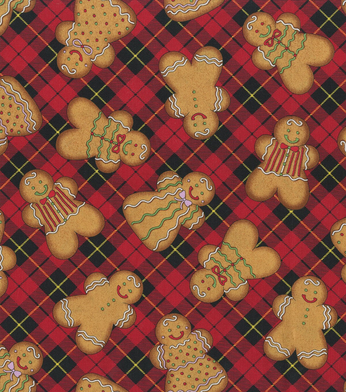 • Hi Fashion Gingerbread Cookies on Plaid Christmas Cotton Fabric