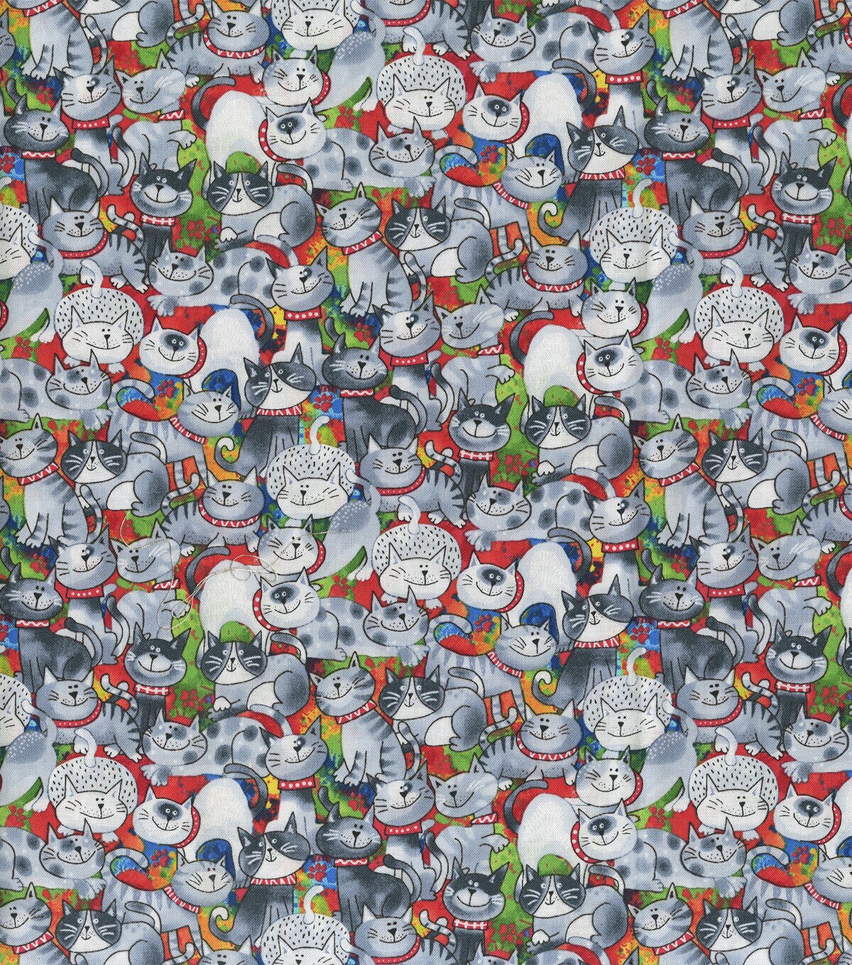 Hi Fashion Gray Cats on Tie Dye Novelty Cotton Fabric
