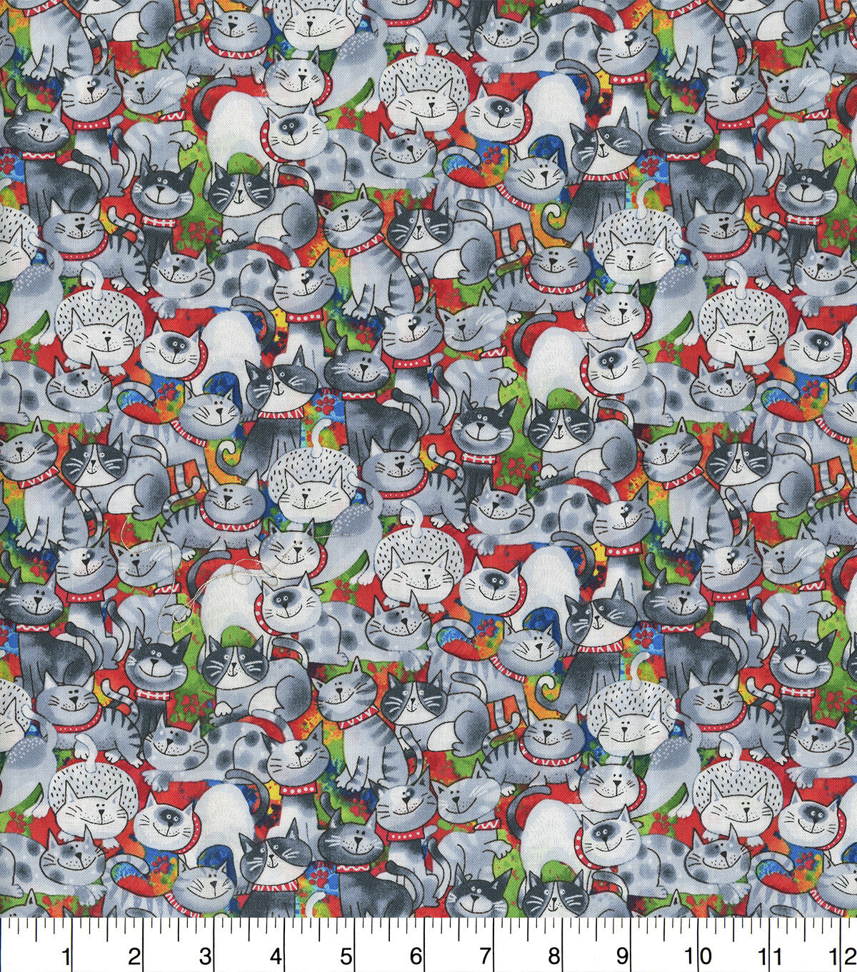 • Hi Fashion Gray Cats on Tie Dye Novelty Cotton Fabric