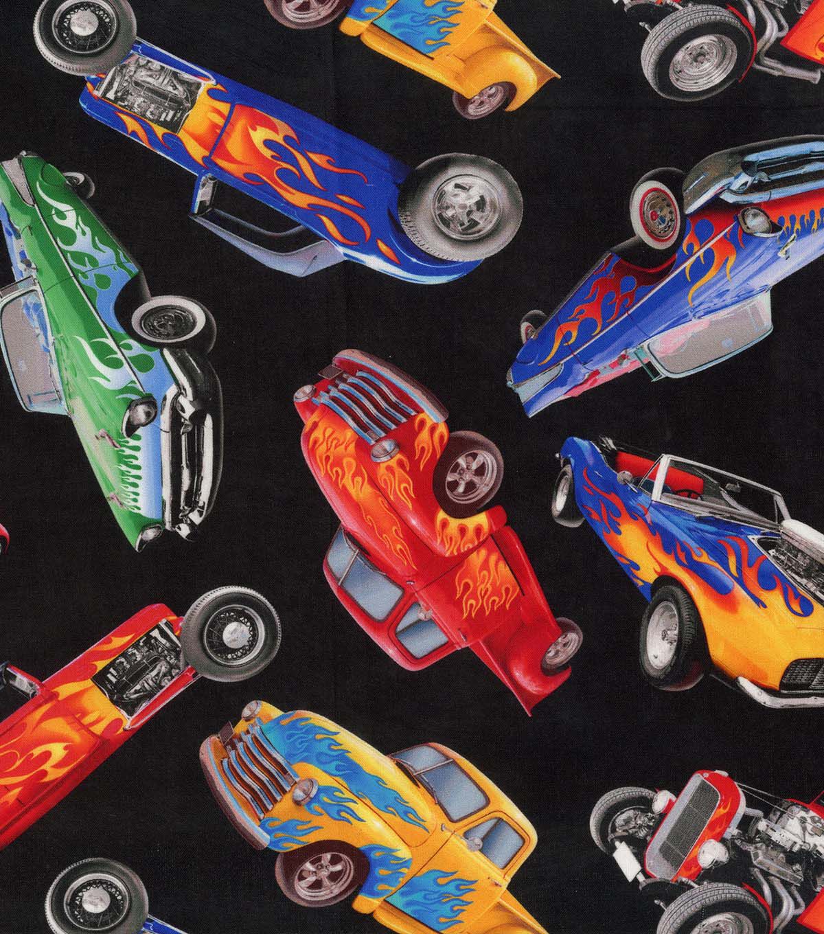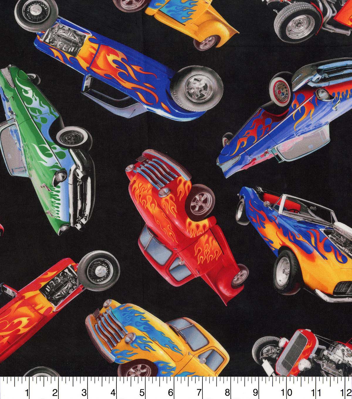 Not only is this fabric visually stunning, it is also made from 100% cotton, ensuring that it is soft, durable, and easy to work with. And with a width of 44 inches, you'll have plenty of fabric to work with for all of your crafting needs. Whether you're making a quilt, a tote bag, Hot Wheels on Black Novelty Cotton Fabric is the perfect choice.