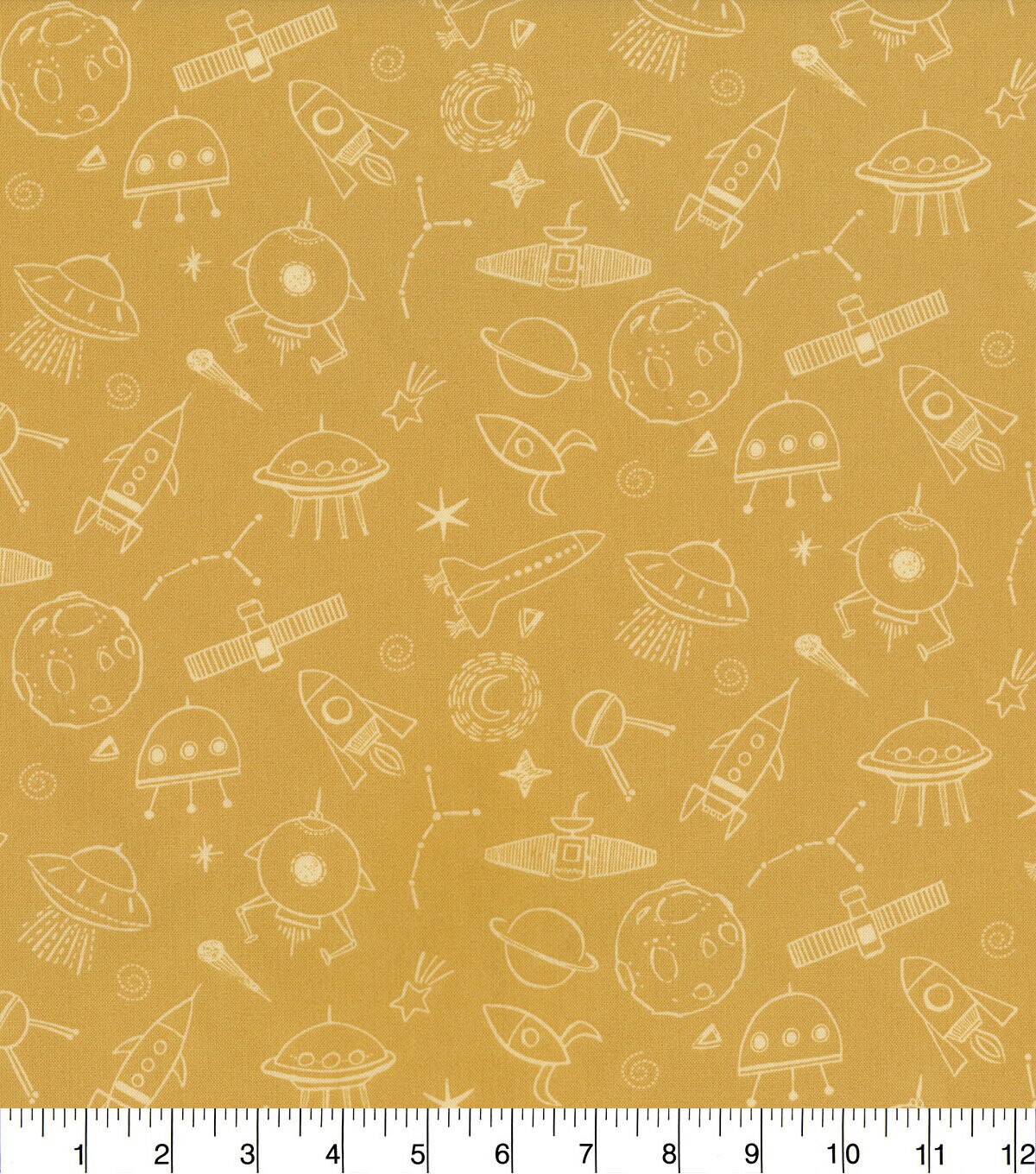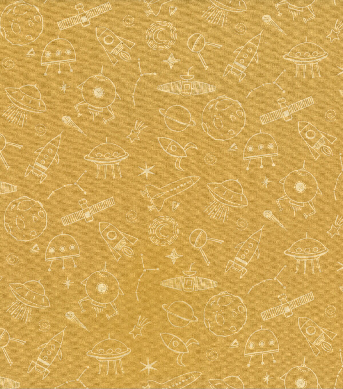 • Hi Fashion Moon Drawing Space Icons on Yellow Cotton Nursery Fabric