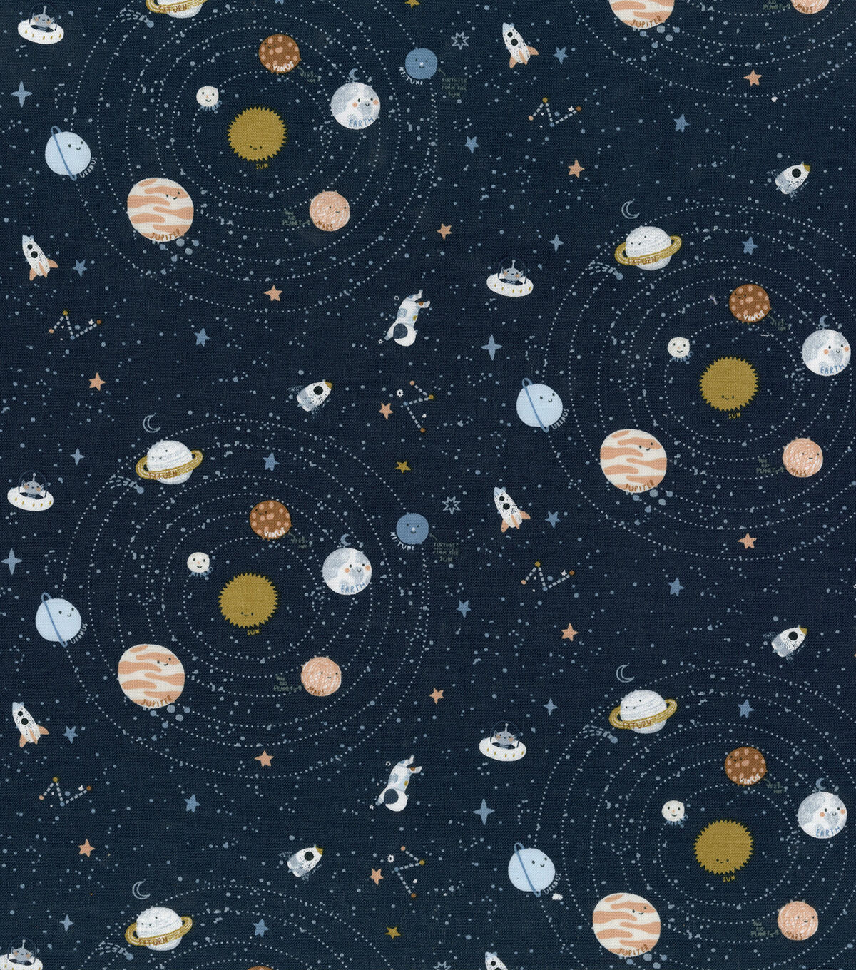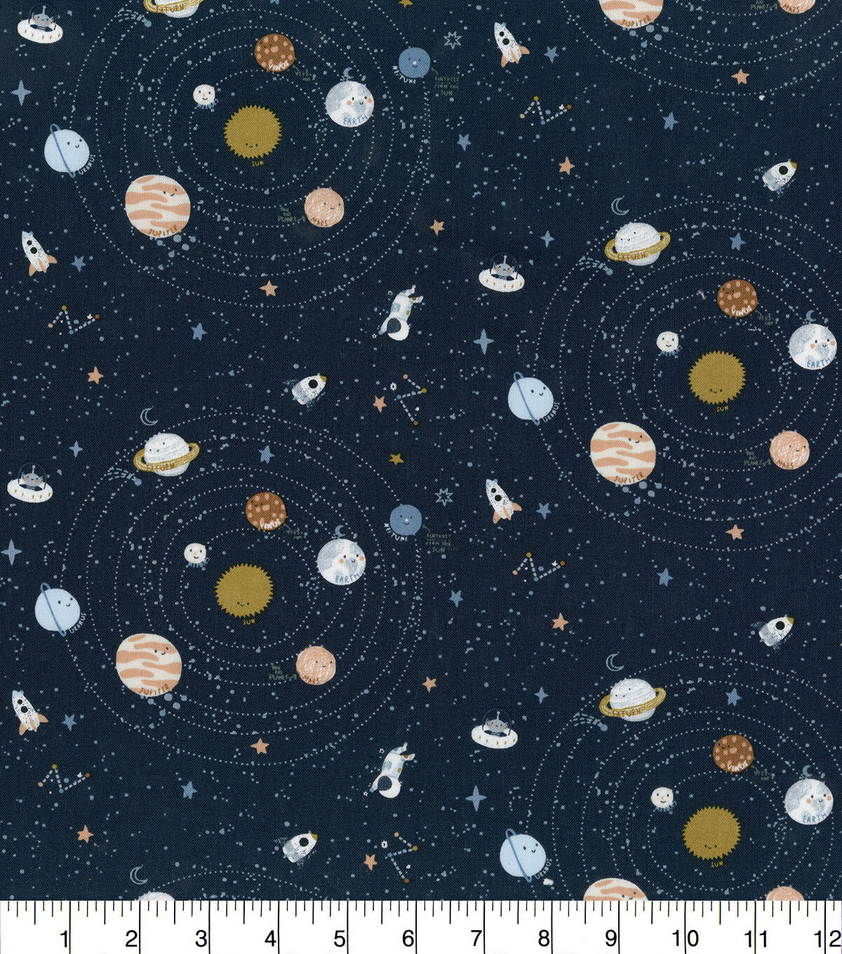 • Hi Fashion Moon & Space Icons on Blue Cotton Nursery Fabric