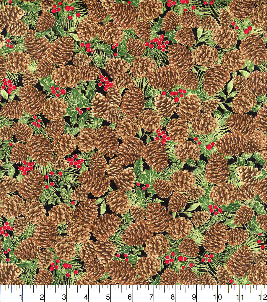 Get into the Festive Spirit with Hi Fashion Packed Pinecones Christmas Metallic Cotton Fabric