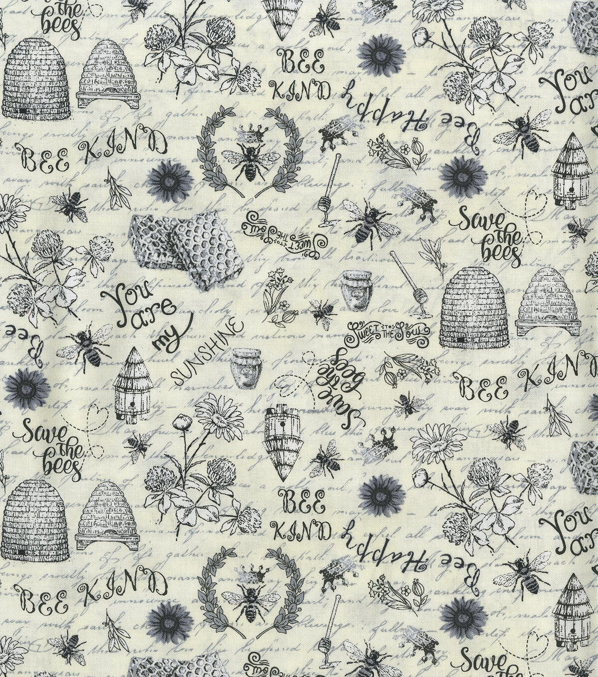 Hi Fashion Save the Bees on Cream Premium Print Cotton Fabric