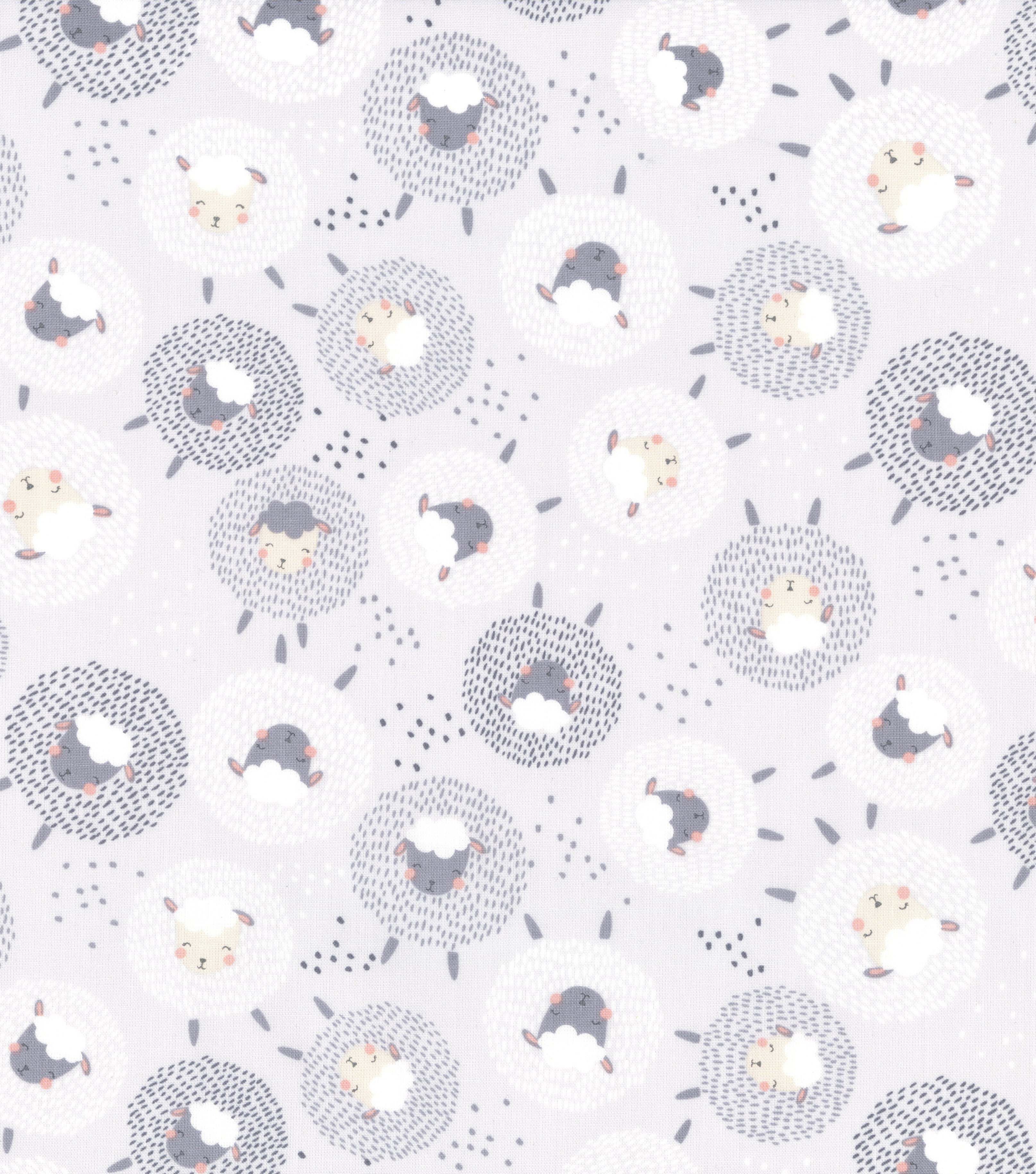 • Hi Fashion Sheep on Gray Nursery Cotton Fabric