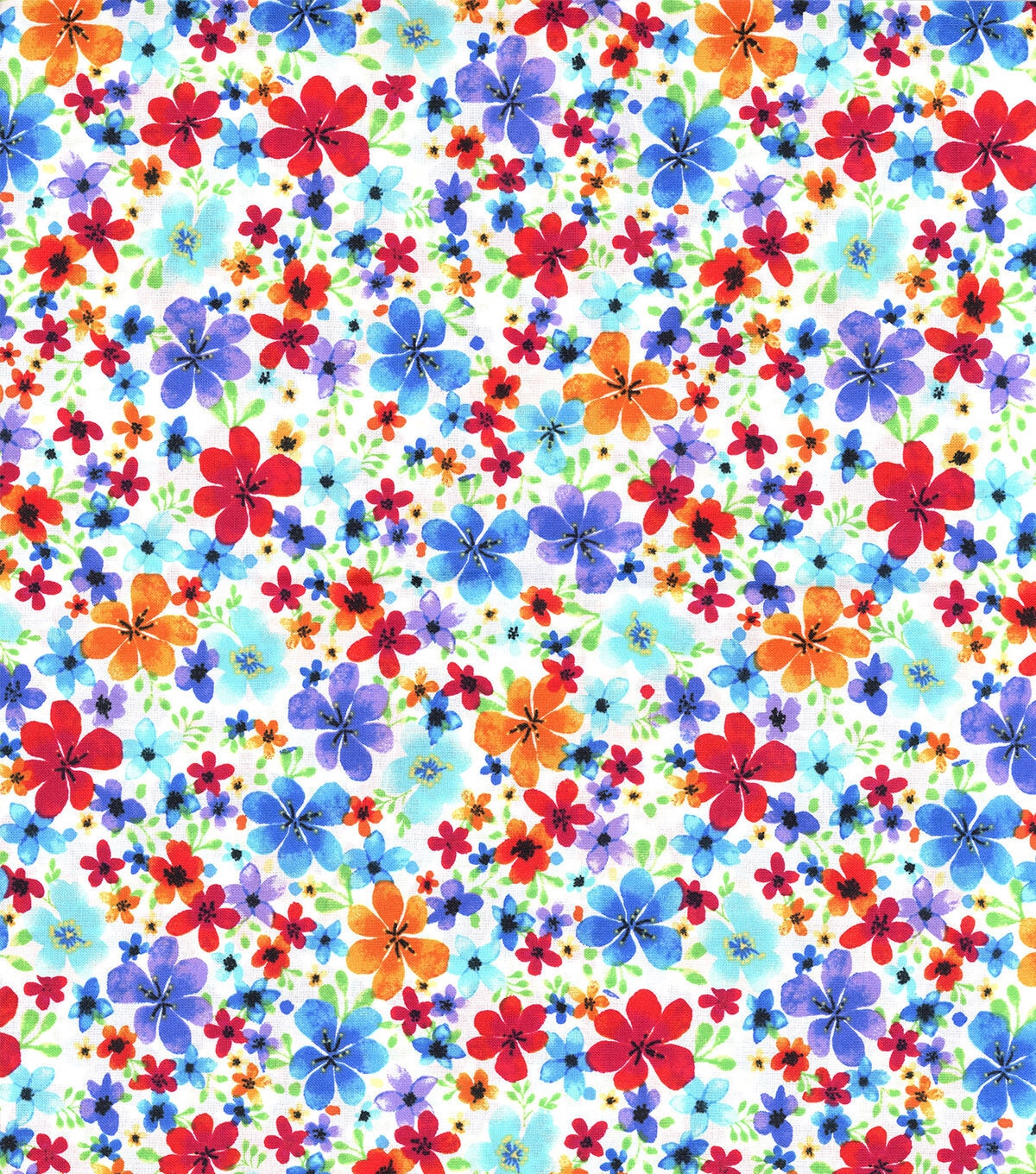 • Hi Fashion Small Floral White Premium Print Cotton Fabric