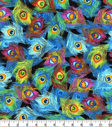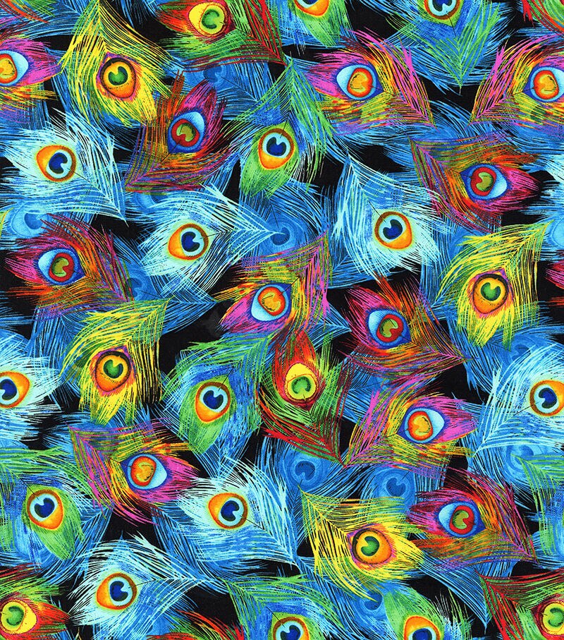 • Hi Fashion Super Bright Peacock Feathers Premium Cotton Fabric