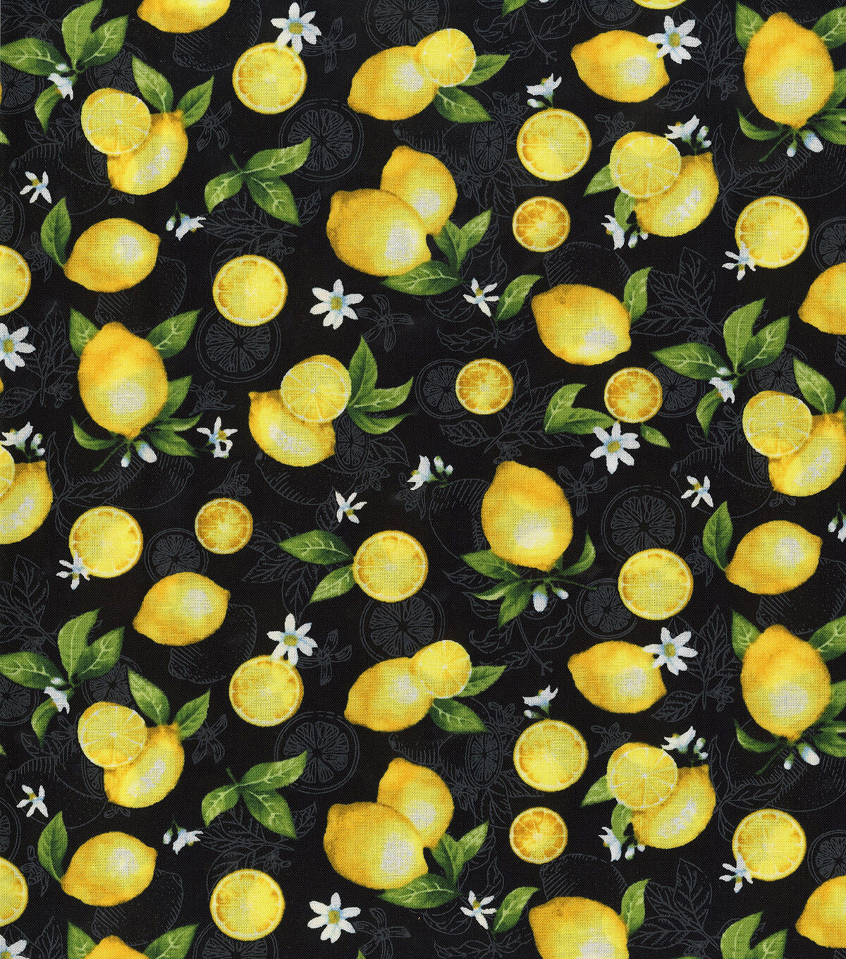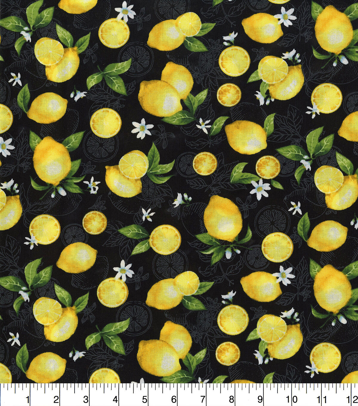 • Hi Fashion Tossed Lemons And Slices On Black Premium Print Cotton Fabric