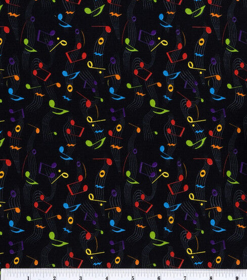 Lend an artsy upgrade to your next sewing project with the Novelty Cotton Fabric-Tossed Music Notes. It displays colorful music notes tossed across a black background adding to its striking design. Use this printed cotton fabric to design wonderful quilted projects. You can also transform it into a trendy tote bag or a backpack and gift it to the music aficionado in your life.