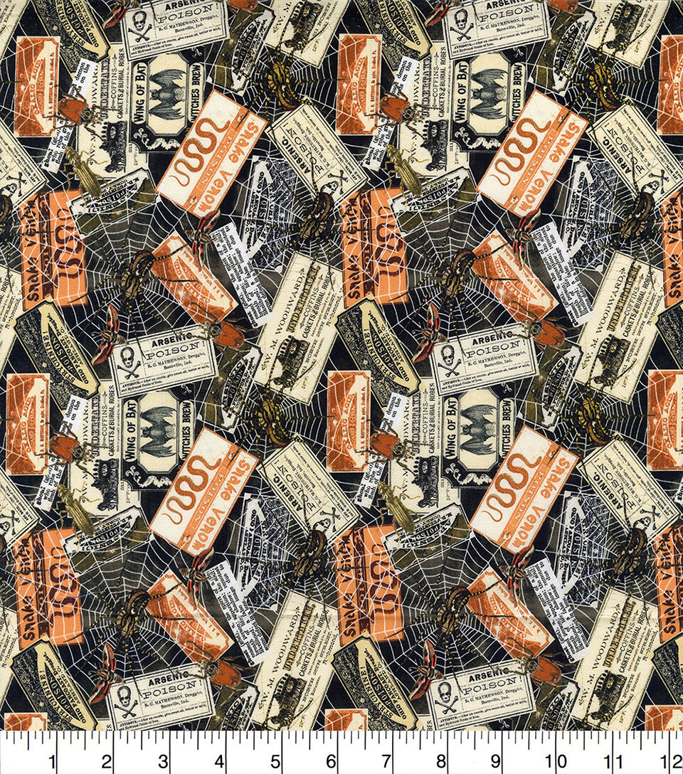 Hi Fashion Tossed Seance Icons Halloween Cotton Fabric