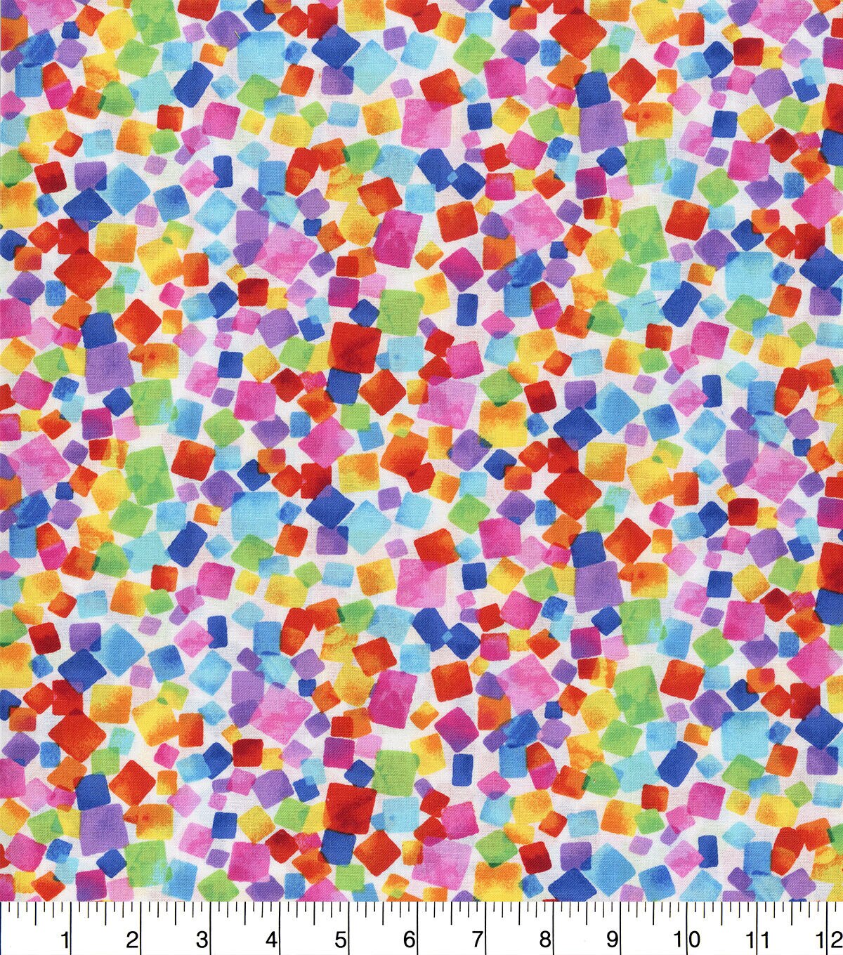 • Hi Fashion Vibrant Squares On White Premium Print Cotton Fabric