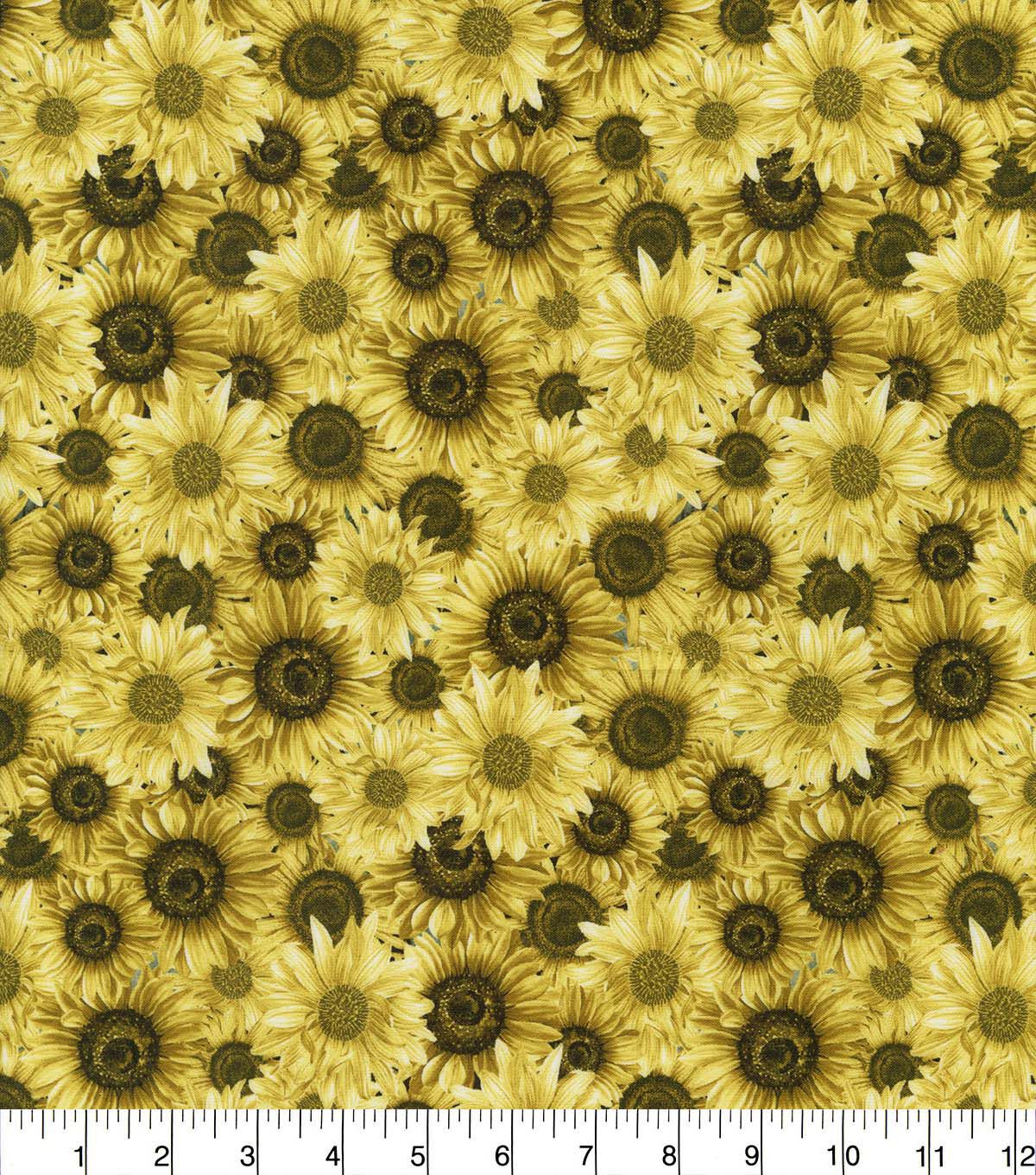 • Hi Fashion Yellow Sunflowers Premium Cotton Fabric