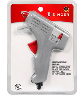 Use the Singer High Temperature Glue Gun to secure fabrics or crafts, and repair or modify toys, furniture, woodwork, metals and lots more. This pack contains a 4.5 x 4.5-inch 10-watt, high-temperature glue gun, a cord with a two-prong plug and instructions. Glue sticks are sold separately.