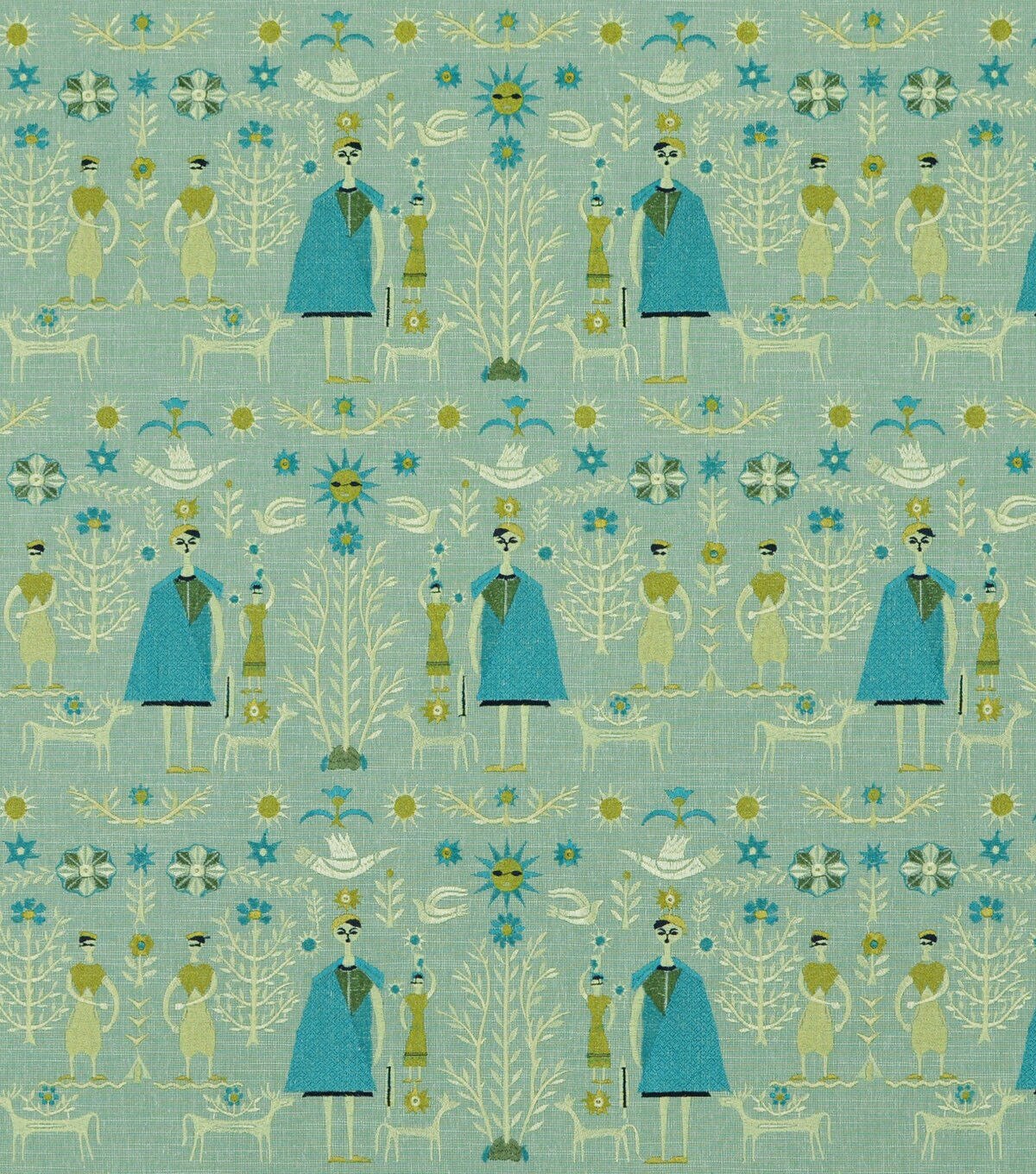 Come Together is a novelty embroidery featuring people, animals, birds and plants. This unique design "brings together" different cultures for a truly special fabric that will bring joy to any home.
