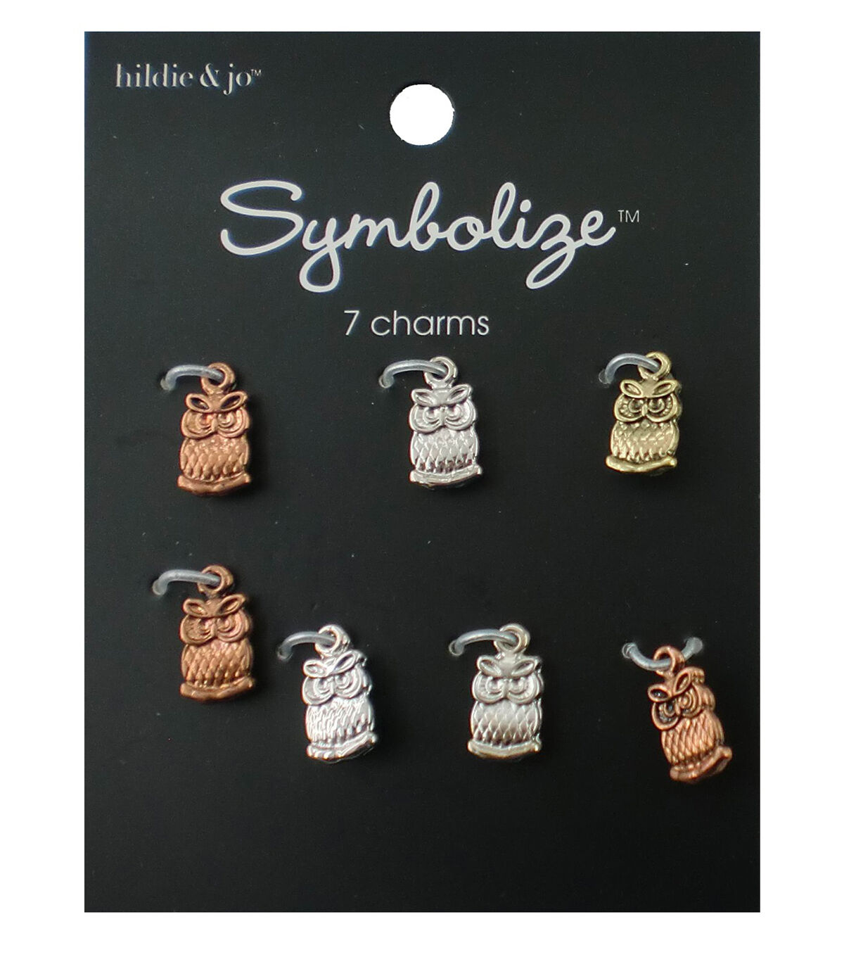 Add an adorable look to your jewelry-making projects using the hildie & jo Symbolize Owl Charms. Artistically shaped into intricate owls, these charms are sure to put pep into anything you design. Use these pieces to decorate bracelets, necklaces, craft projects and more. These seven assorted charms come in silver, gold and bronze and display etching detail for the eyes and feathers.