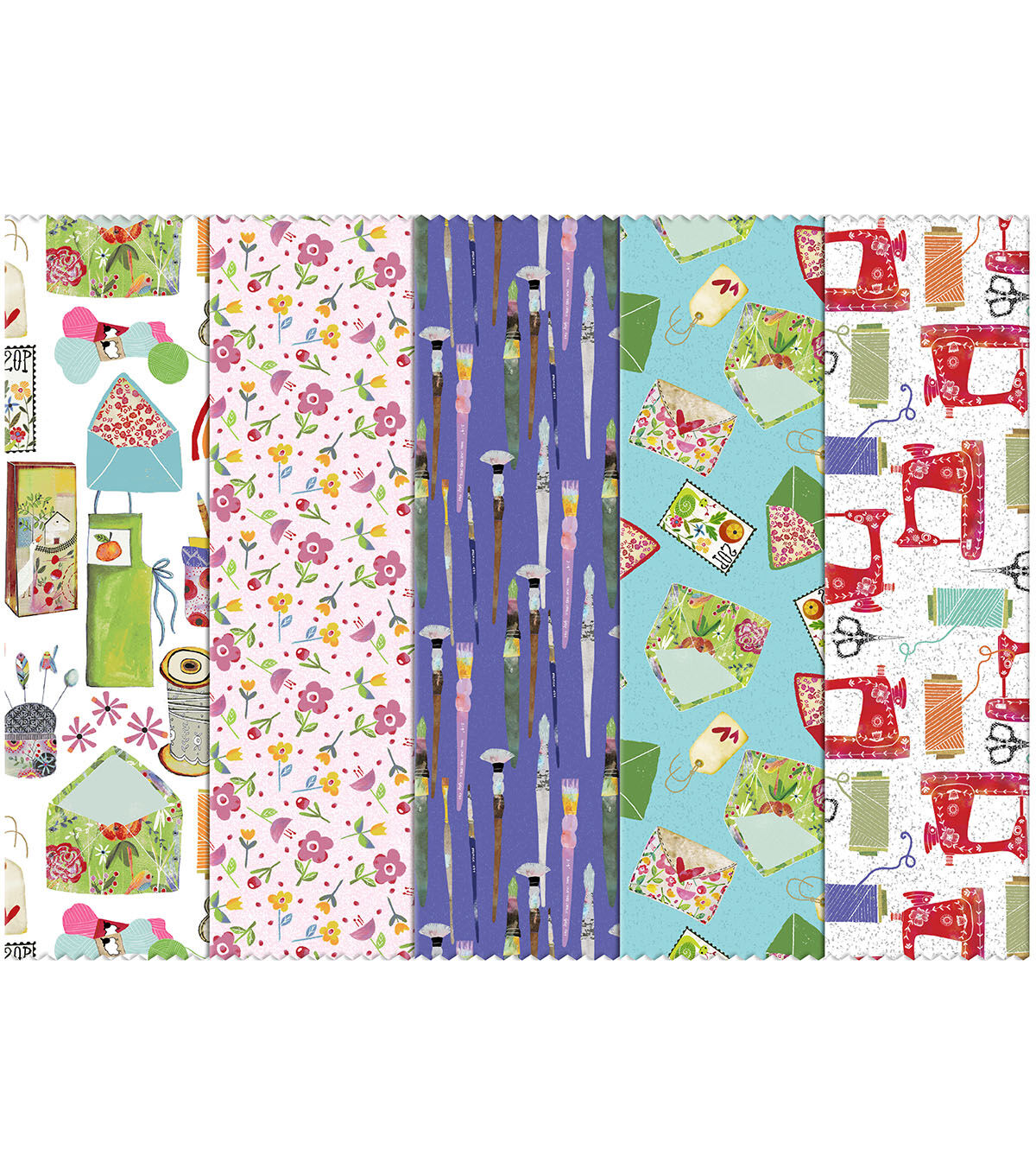 If you love sewing and crafting this is the fabric pack for you! Sewing machines, scissors, paint brushes are just a few of the beautifully hand drawn elements highlighted in these gorgeous 10" x 10" fabric squares.