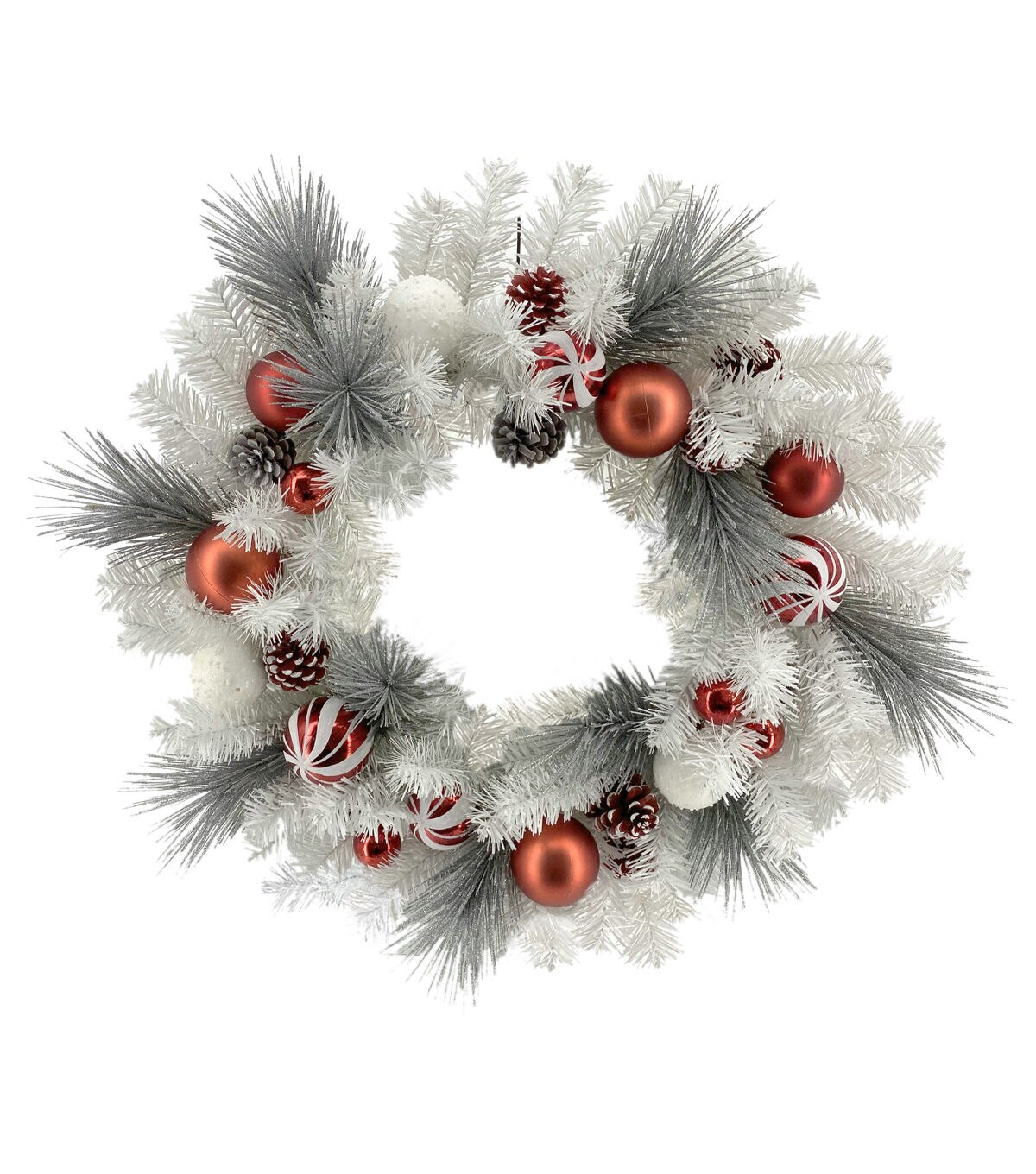 Echoing festive vibes, the Christmas Red & White Bauble & Pine Wreath and Garland by Bloom Room are perfect for decorating your home this holiday season. This decorative wreath and garland are designed with faux pine needles in a silver tone, red and brown pinecones and baubles flaunting lovely hues and finishes. Trim both with ribbon bows and with candles to create a lovely display.