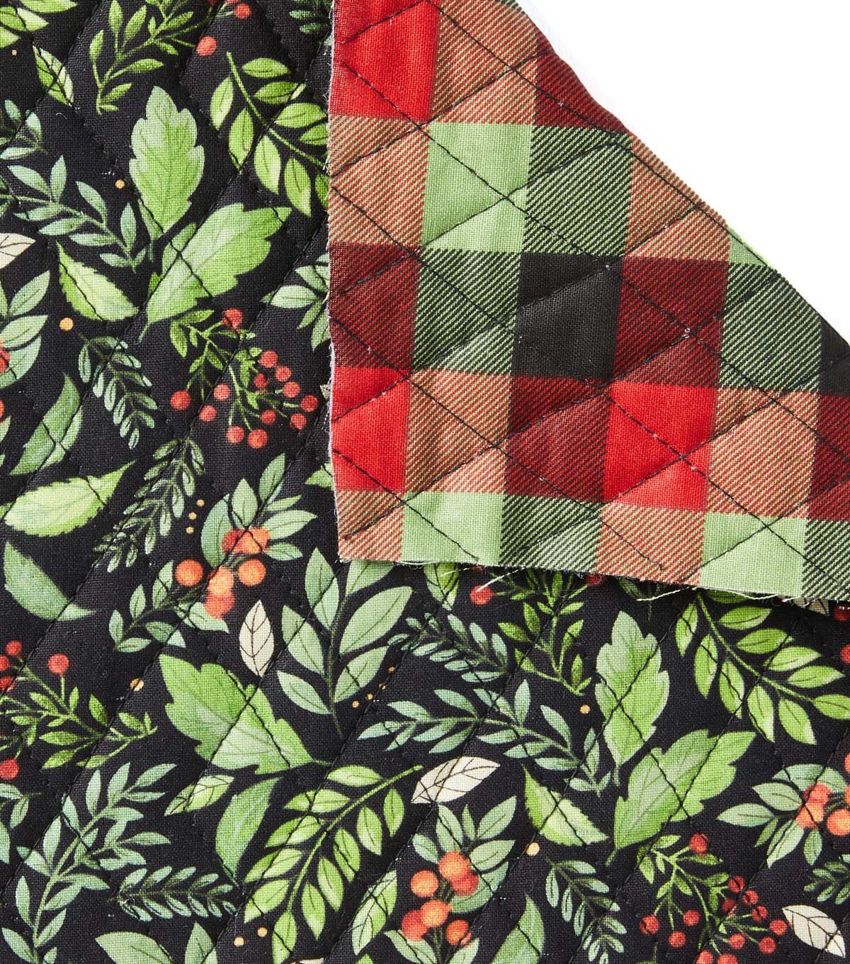 Holly & Buffalo Checks Double Faced Pre Quilted Christmas Cotton Fabric