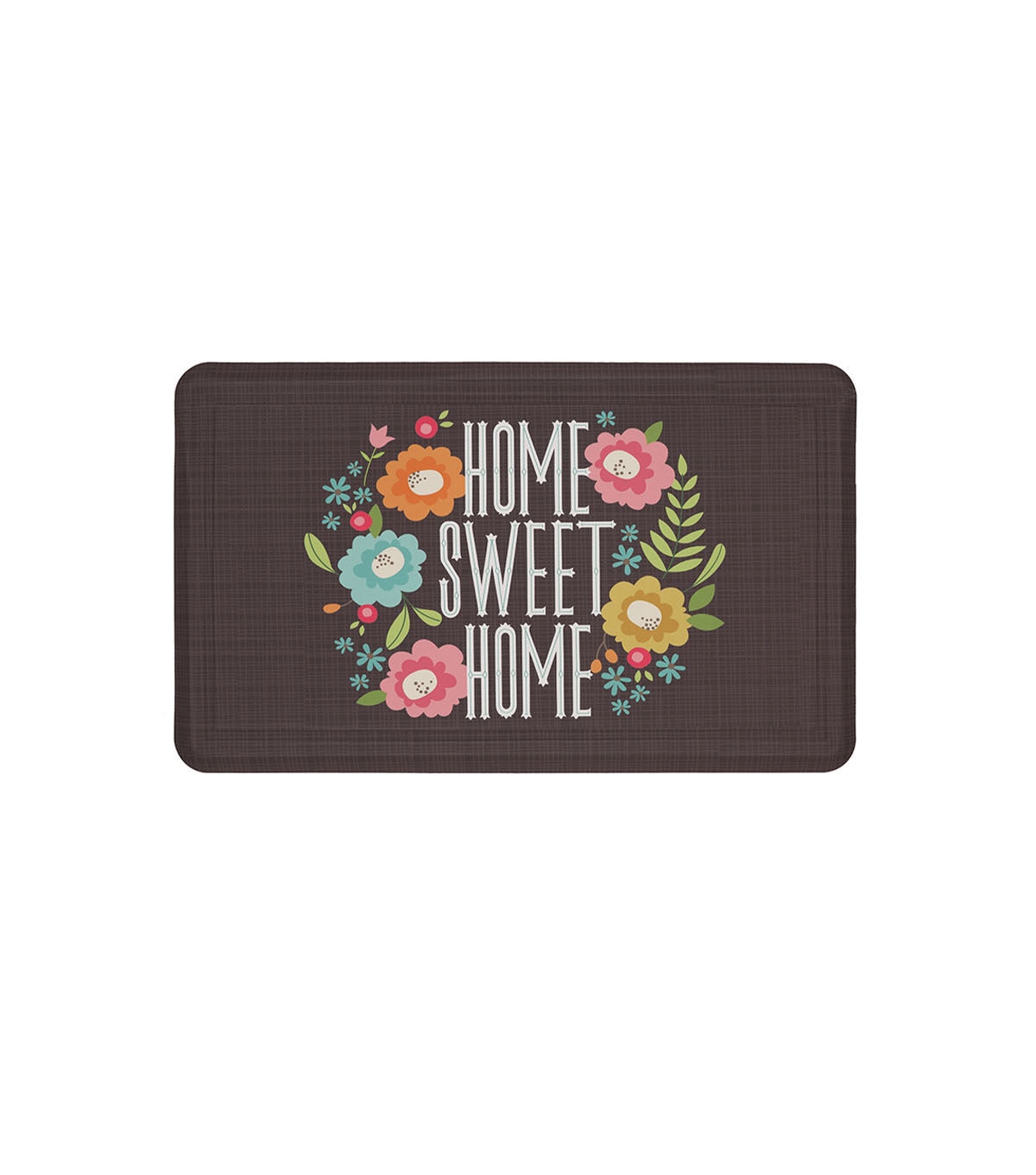 Fashion and function meet in the Impressed Home Sweet Home Kitchen Mat from Mohawk. Featuring sweet springtime inspired blossoms on a brown cross-hatch patterned base, this mat will add both beauty and brilliant design to your kitchen. Feel the luxuriously soothing comfort for yourself with the premium plush cushion core. Mohawk's advanced anti-fatigue technology offers welcomed relief from back, leg and foot discomfort often caused by standing on hard surfaces. Exclusive Dri-Pro technology is essential for tackling spills; simply wipe away moisture and messes. This mat is consciously crafted with a stain resistant polyester face and polyurethane skid resistant backing.