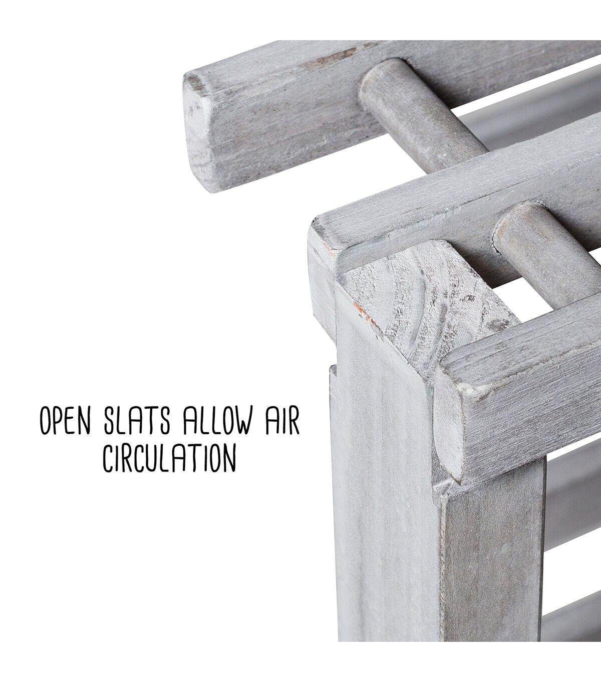 This shoe shelf is the perfect combination of function, versatility, and style. Fitting up to 8 pairs of shoes - or more if they are kids shoes - this stylish gray shoe rack is the perfect entryway or closet companion to keep your kicks in order.