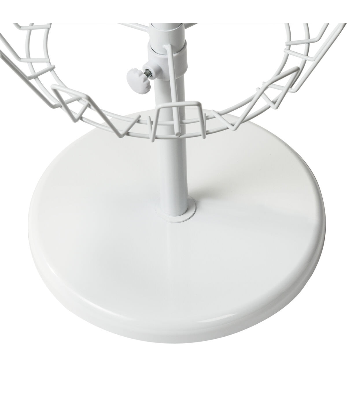 Go vertical and store up to 24 pairs of shoes on this bright white shoe tree. With only a single square foot of floor space required, you can reclaim your room and keep your shoe collection accessible and organized. All four levels revolve separately and adjust in height to accommodate small and large shoes, which gives you a flexible storage solution and easy access to every pair. Measuring 11.4 in x 49.2 in H /29 cm x 125 cm H, the durable steel construction withstands daily use. Some assembly required.