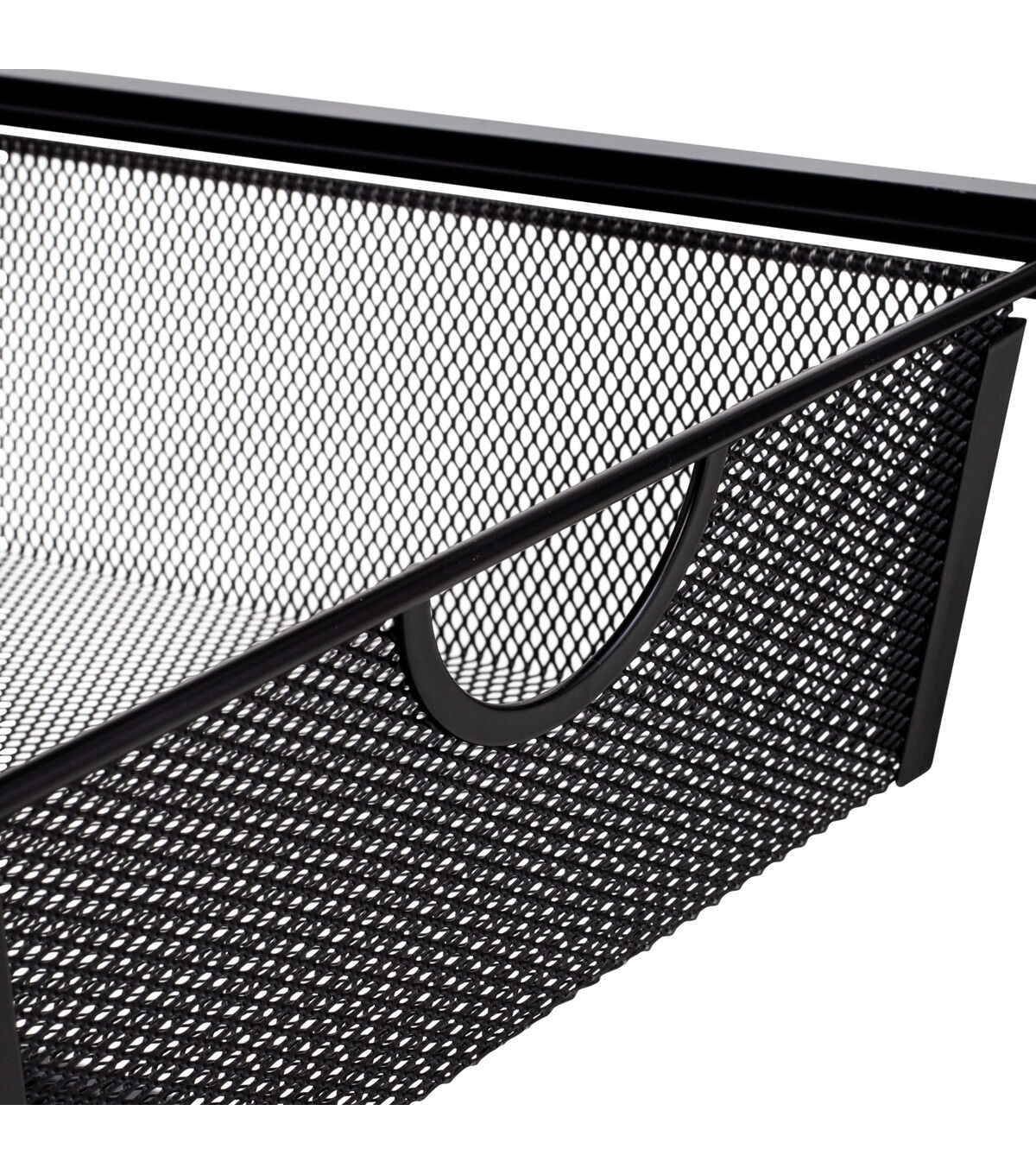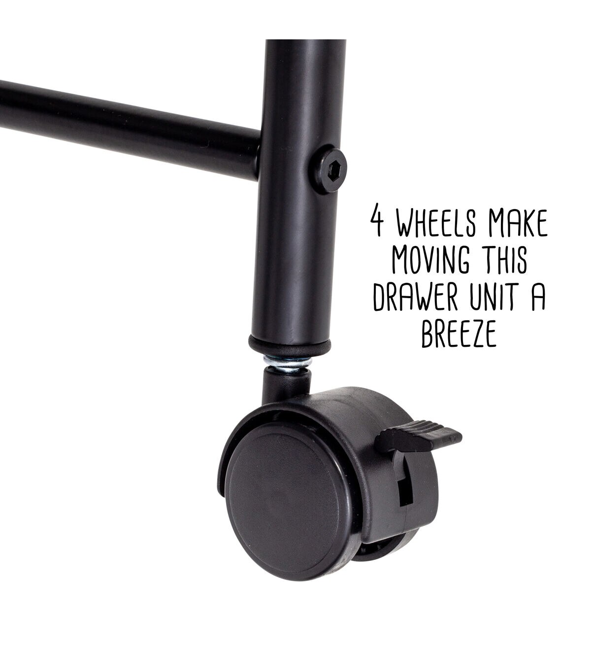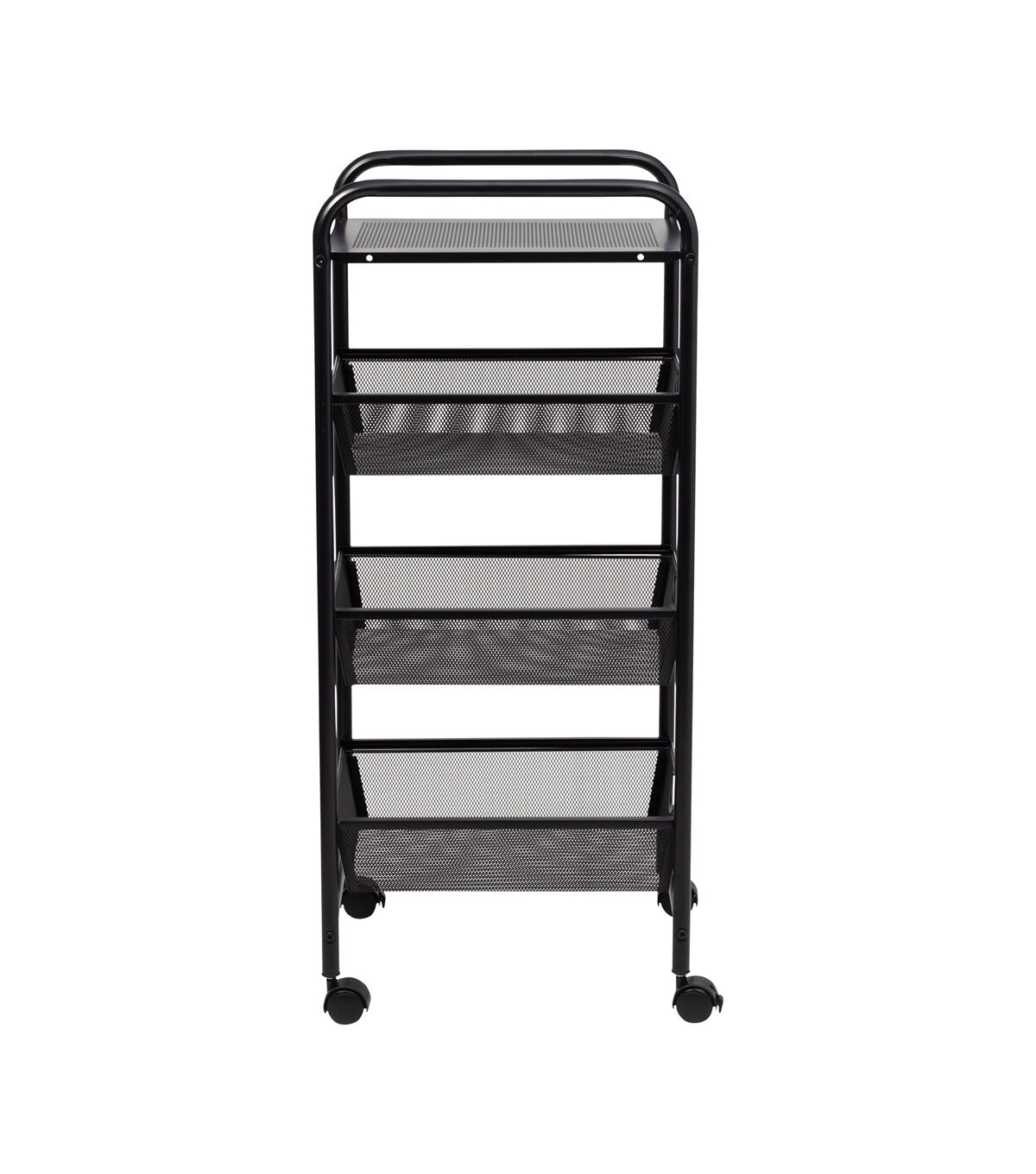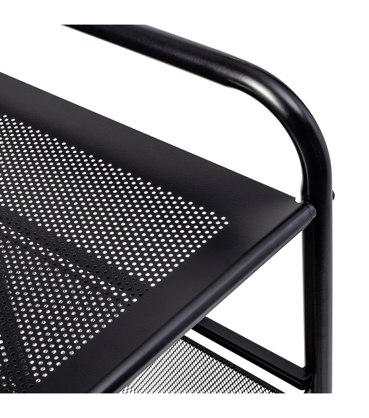 You can kiss the days of laying tall items down in drawers goodbye with this metal rolling cart! Fitted with 3 drawers with an abundance of headspace, there is plenty of room to stand up everything from hair products to condiment bottles in these spacious metal drawers. And you’ll never have to guess where you stashed away something thanks to the open mesh drawer design that provides easy viewing. With the addition of the top shelf, this rolling cart becomes a true organization hero. Whether rolling in to save your home office from chaos or gliding in to organize your kitchen, this sleek metal organizer with drawers will get the job done and push you one step closer to the tidy home of your dreams.