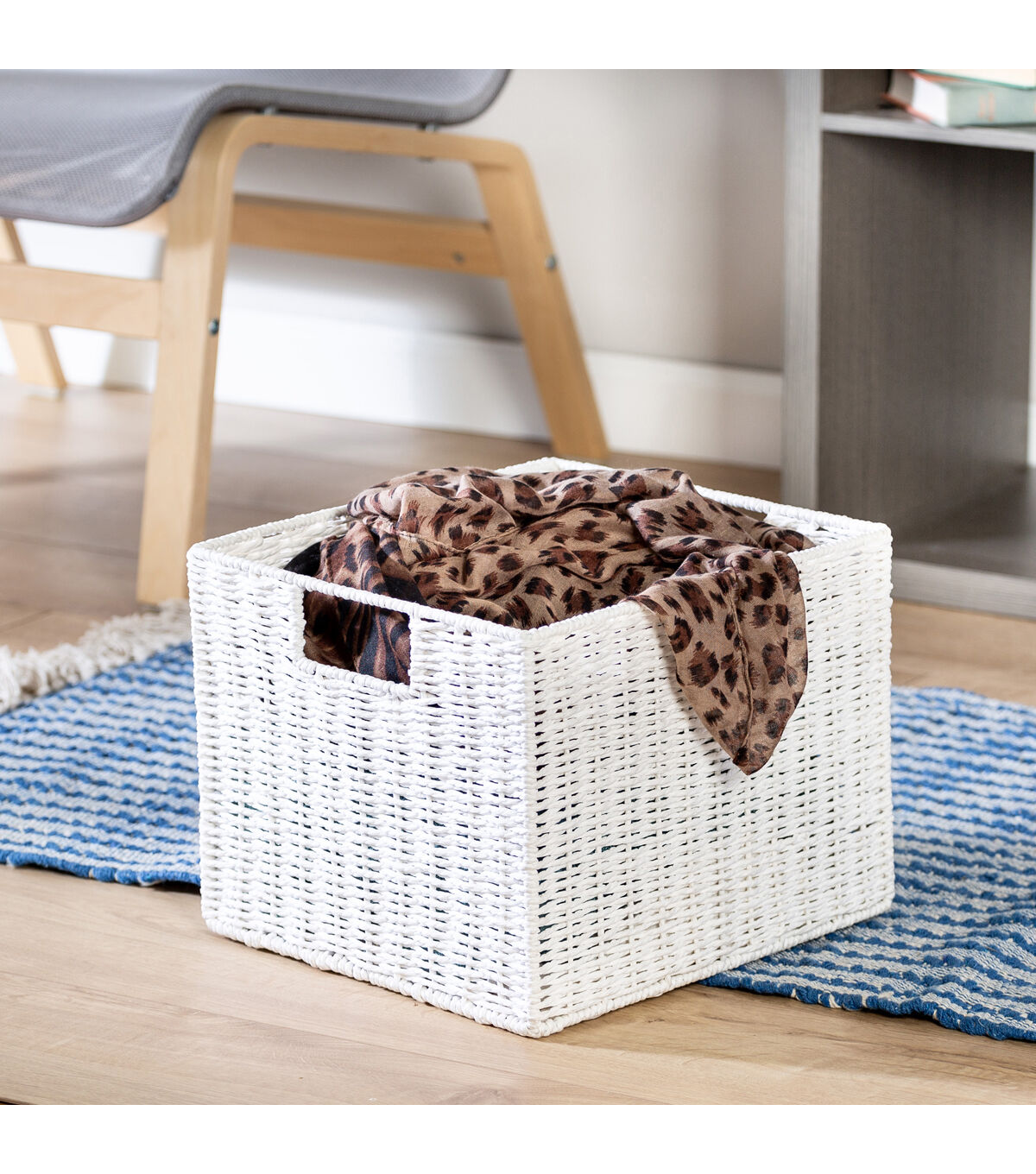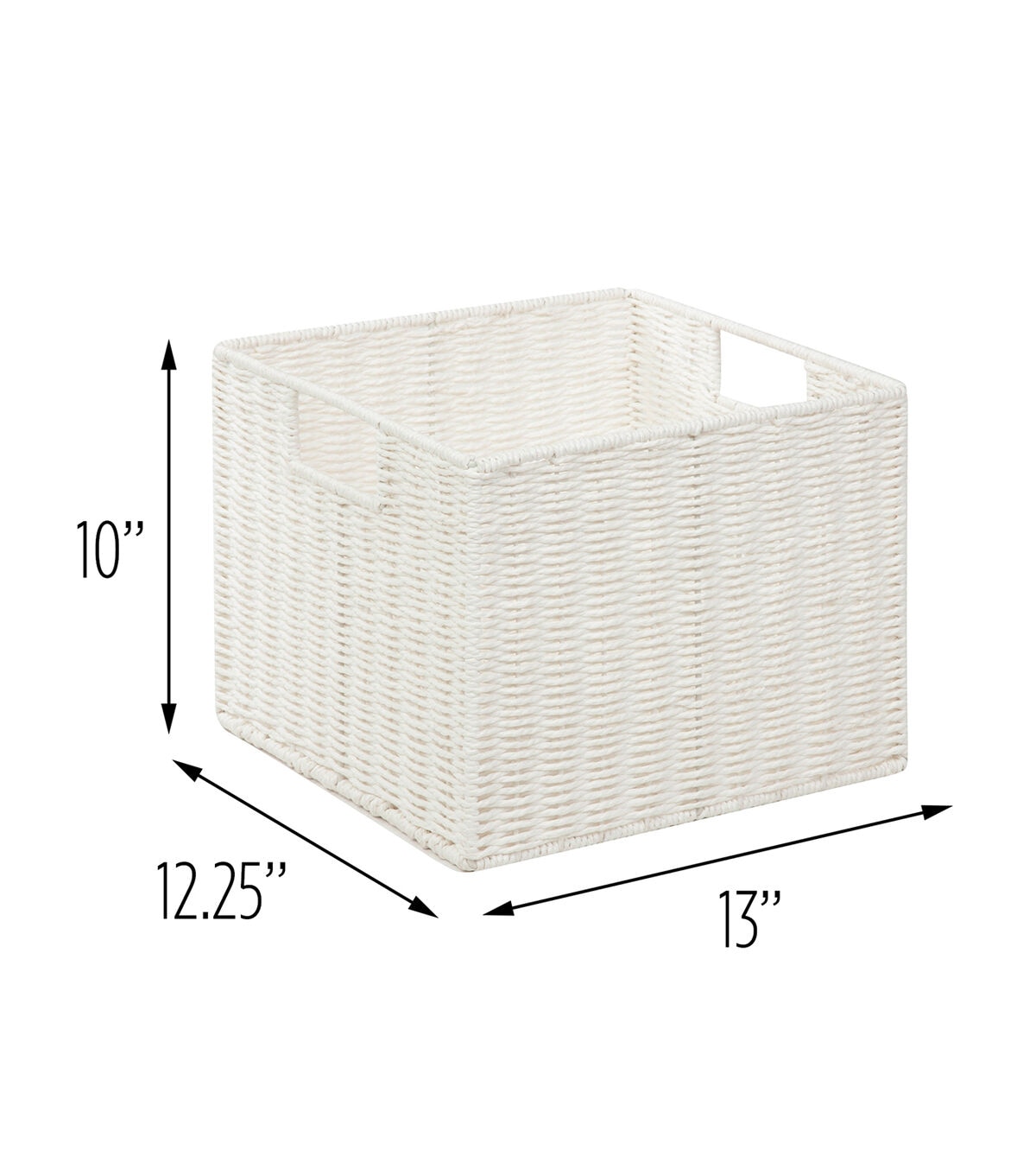Keep clutter at bay with our paper rope crate basket. The recycled and repurposed parchment is formed into strap-like fibers, making the crate durable and eco-friendly. The wire frame adds to its strength, and the built-in carrying handles make it easy to transport. Measuring 12.2" L x 13" W x 10" H, this crate provides endless storage options for any room of the house and its neutral color matches any decor. Coordinates with other paper rope products from Honey-Can-Do.