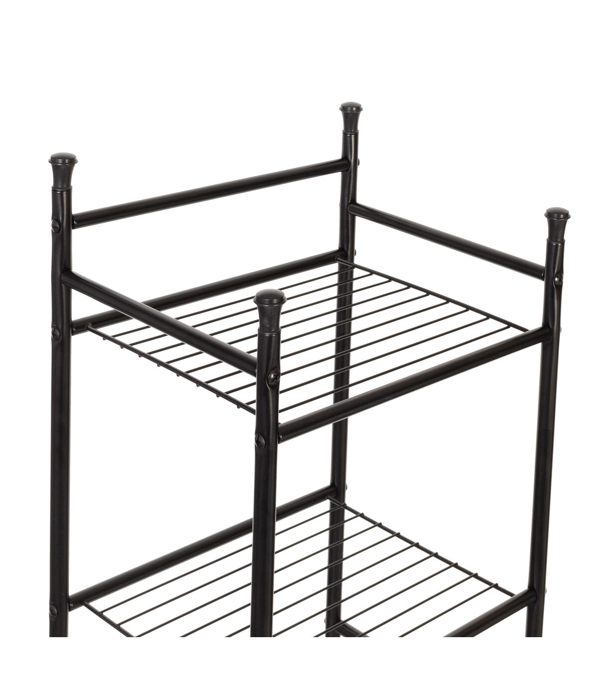- Durable metal shelf offers vertical bathroom storage for small spaces