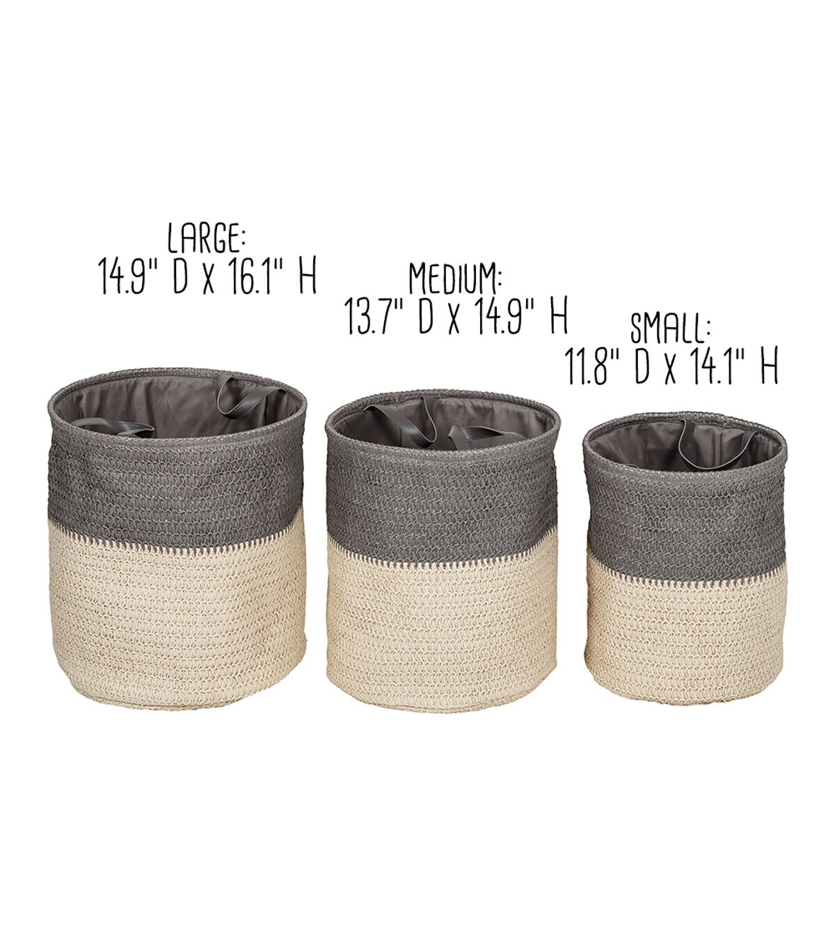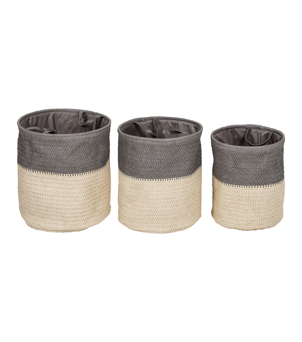 - Set of 3 nesting laundry baskets with easy grab handles
