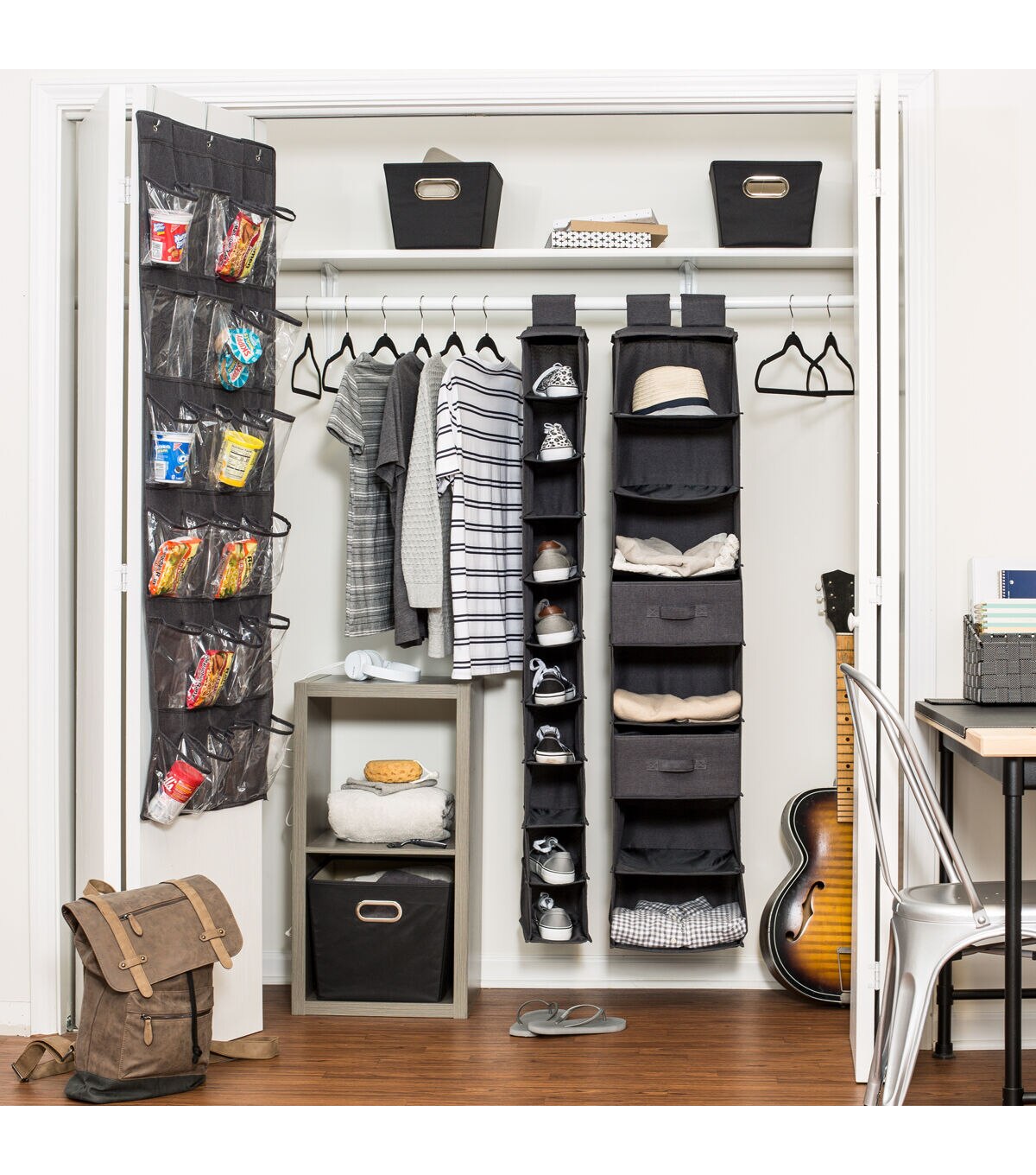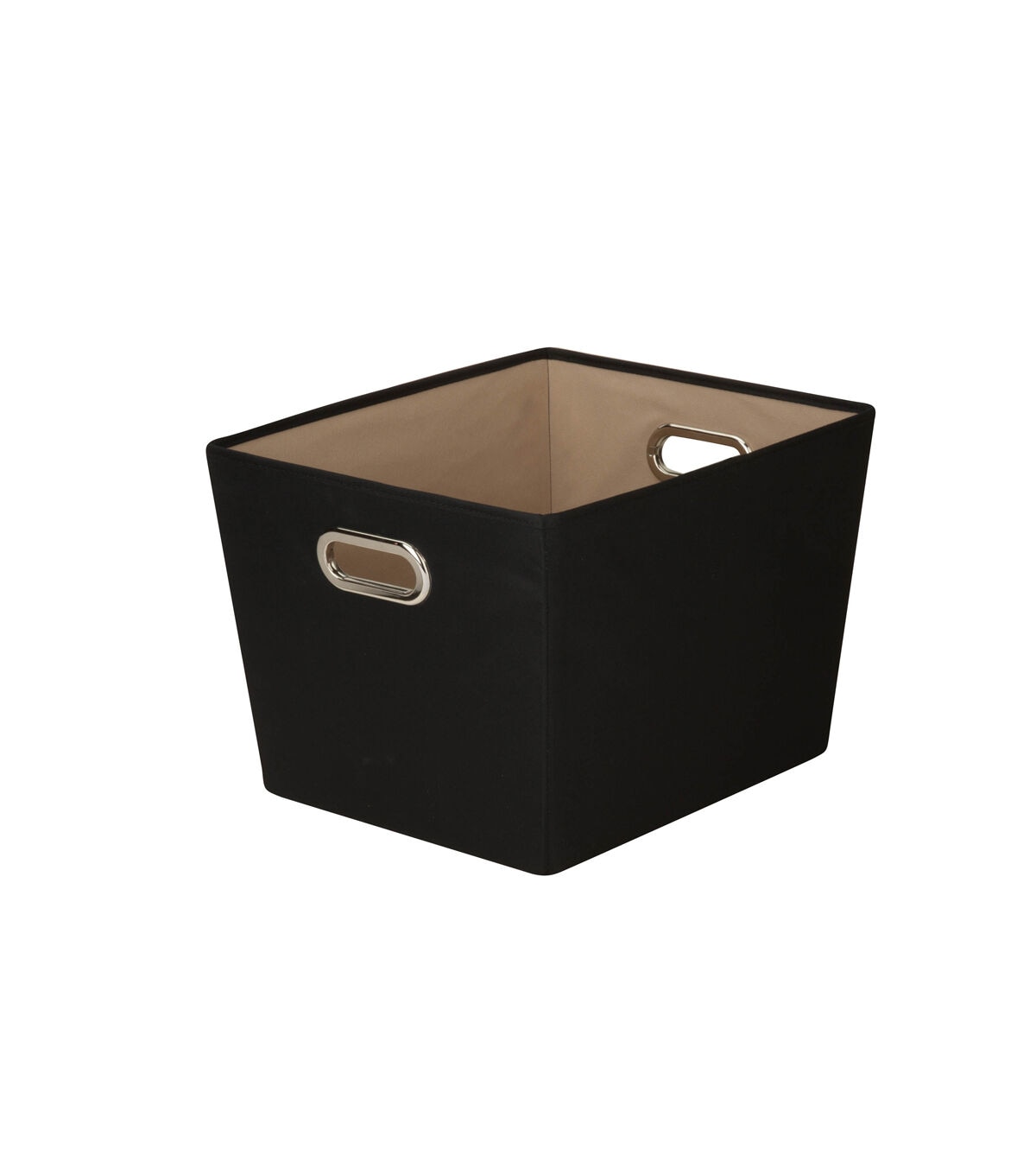 Honey-Can-Do SFT-03072, medium nesting tote, Black. Designed to hold any of your household essentials, this 15.75” x 13” x 10.8” tote adds extra storage and a pop of color to your home. Built-in handles make this tote easy and convenient to move and carry. Its polyester construction will stand up to anything you can throw in it. Coordinates with our large nesting tote. Great for car trunks, kids rooms, closets, shelving units, and more!