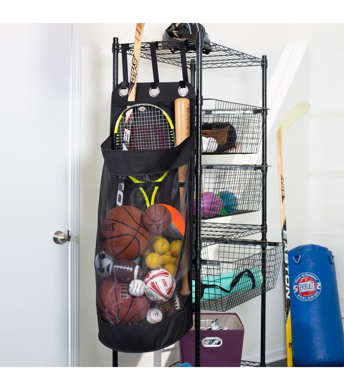 - Conveniently organizes all your sports equipment in one spot