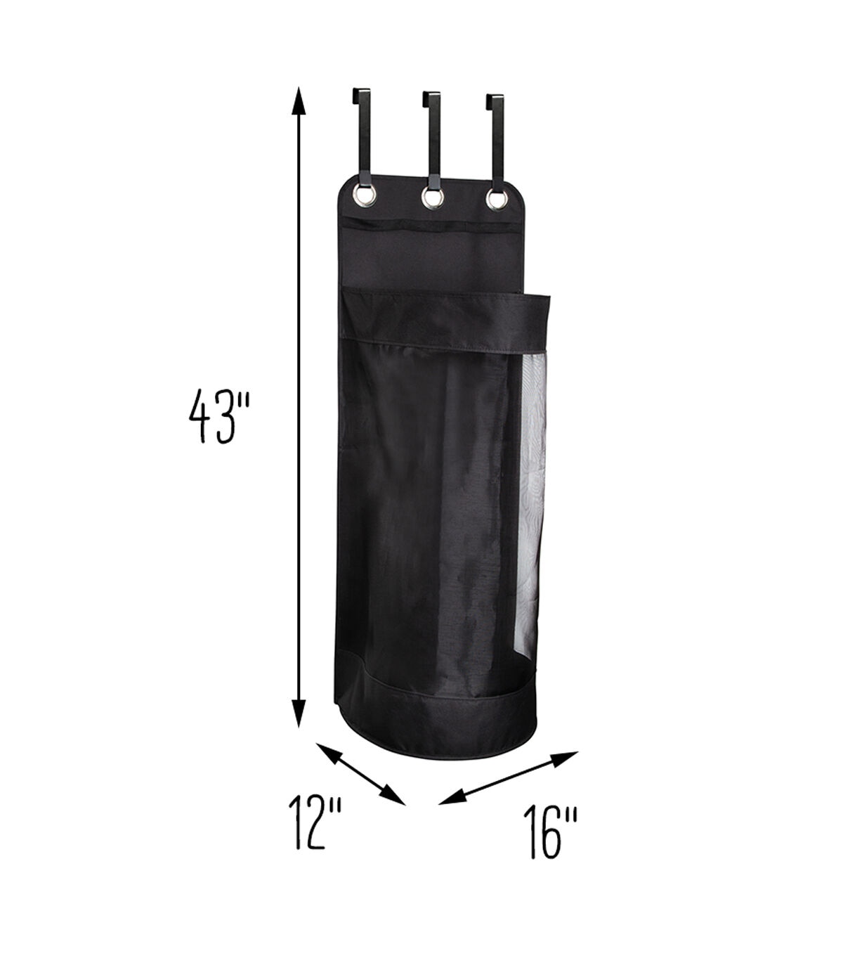 - Three strong hooks hold bag firmly over any door