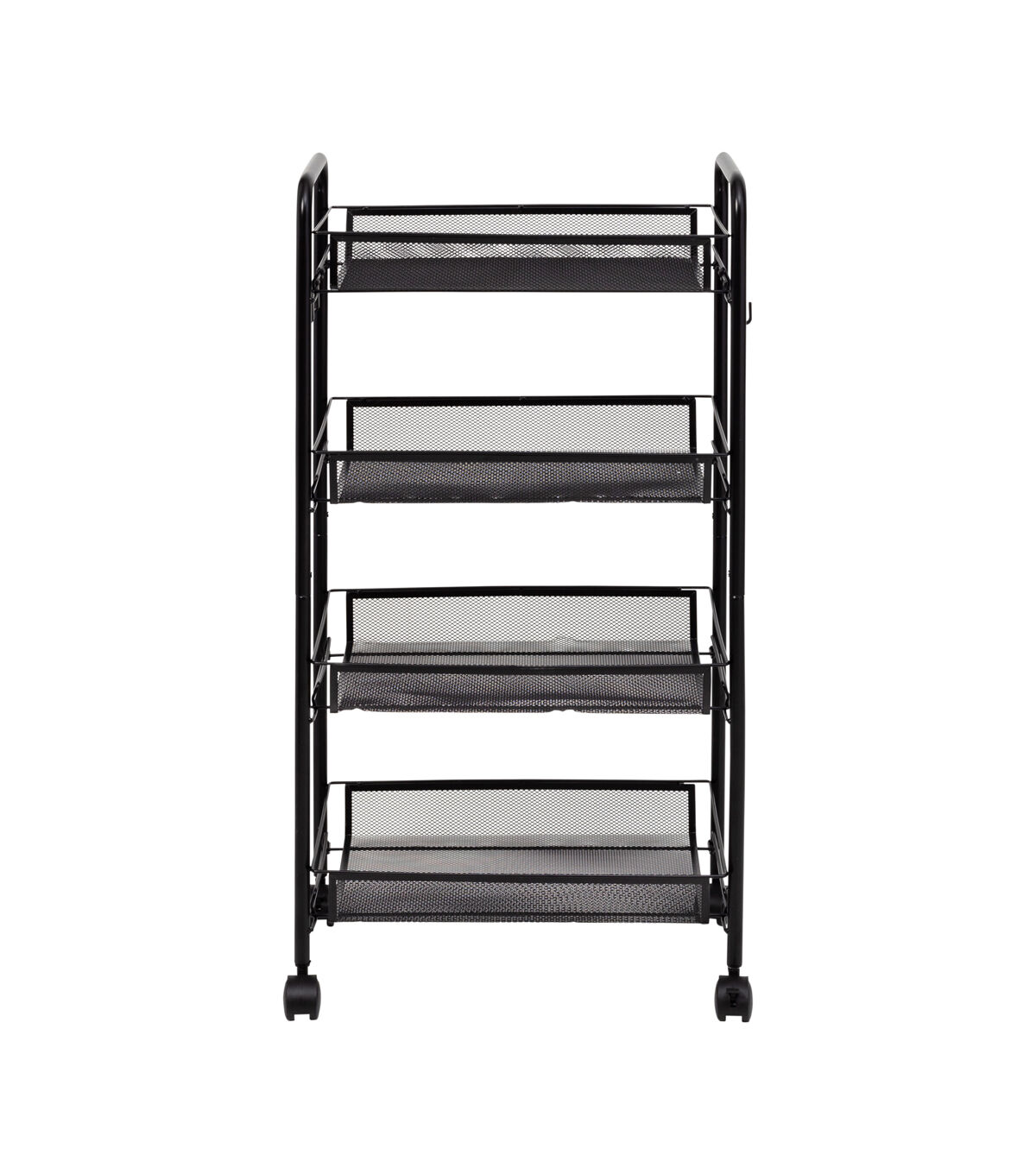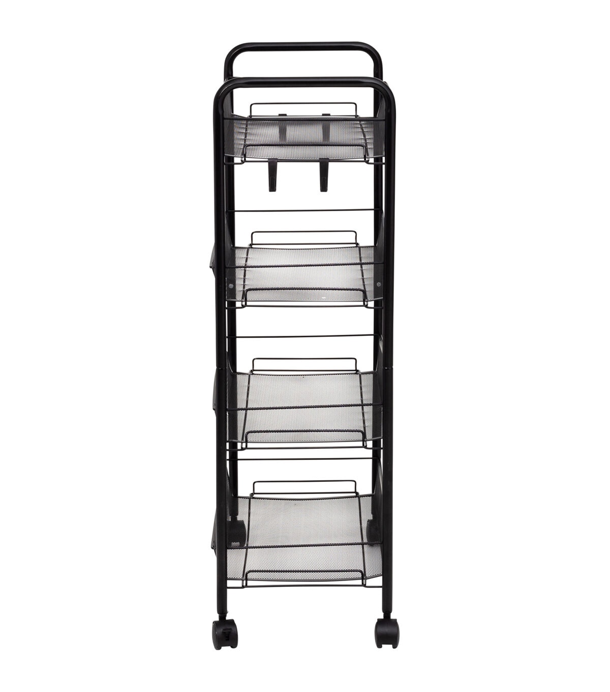 - Black metal 4-tier rolling cart