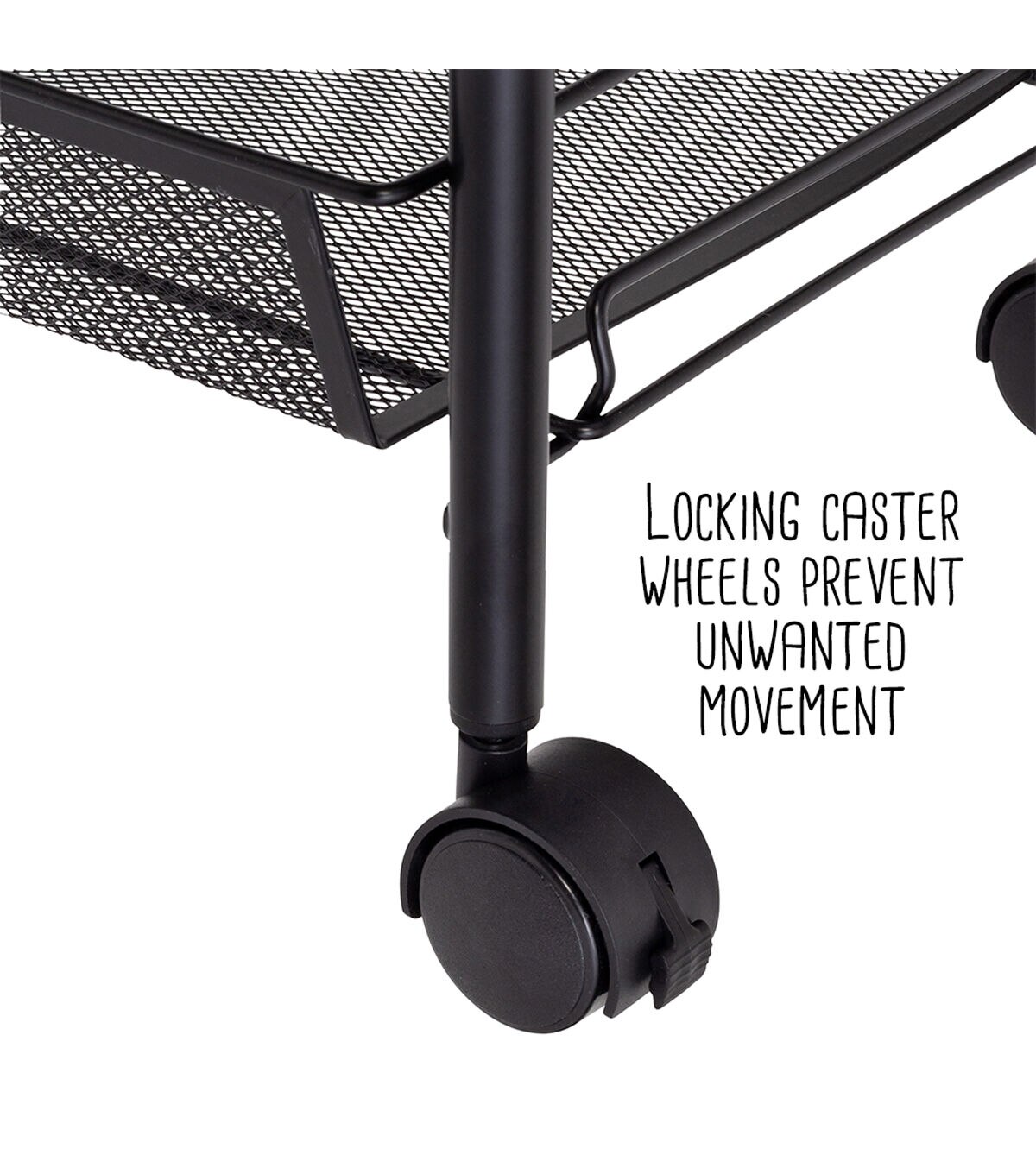 - Locking caster wheels prevent unwanted movement