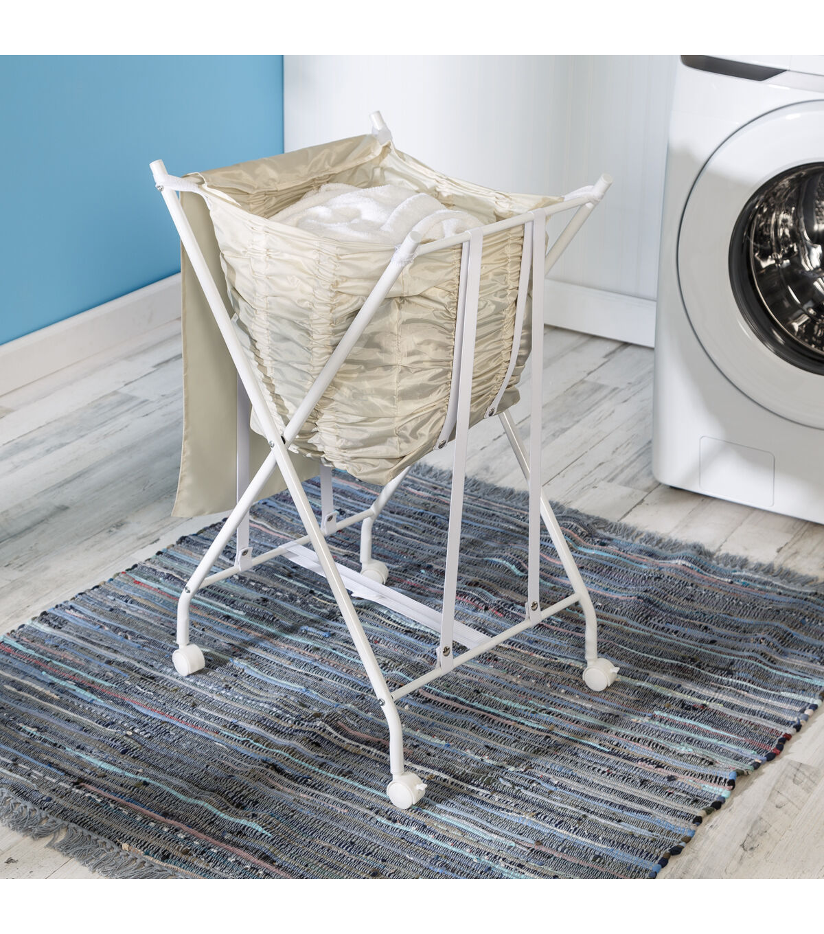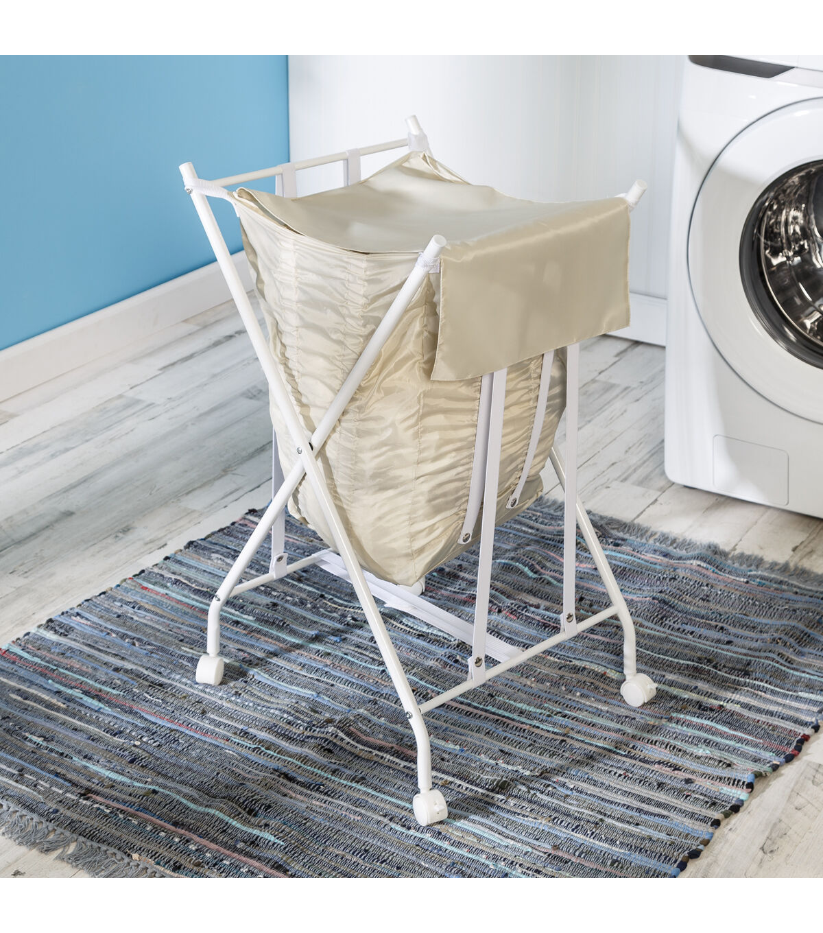 - No bend laundry hamper on wheels protects back health