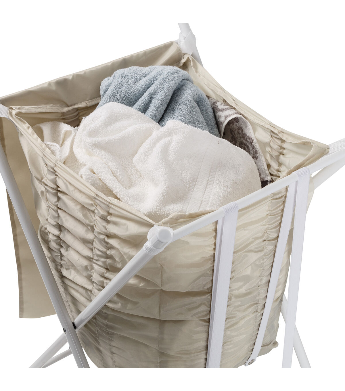 - Innovative bungee bag pushes clothes to the top of the hamper