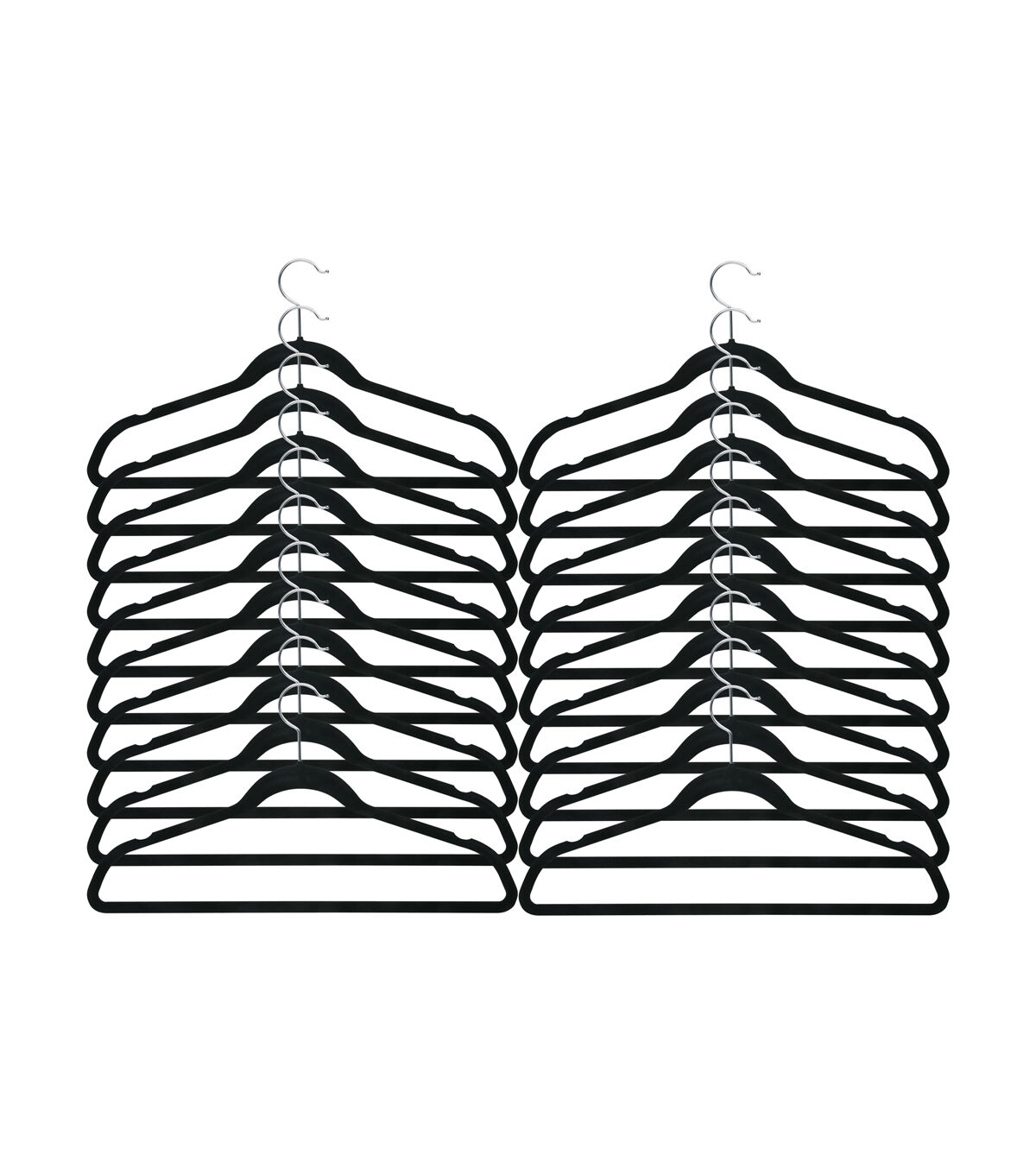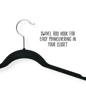This clothes hanger is contoured to keep shirts, dresses, jackets, and pants perfectly wrinkle-free. Features a 360 degree chrome, swivel rod hook to hang items easily on any closet rod, towel bar, or standard size door. Durable metal construction provides strength, reliability, and long-lasting beauty. Soft velvet coating is gentle on delicate garments and provides a non-slip surface that holds fabrics beautifully in place. Slim, space-saving design makes the most use of available hanging space with its 1/4" profile.