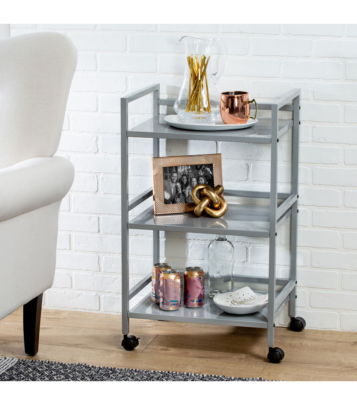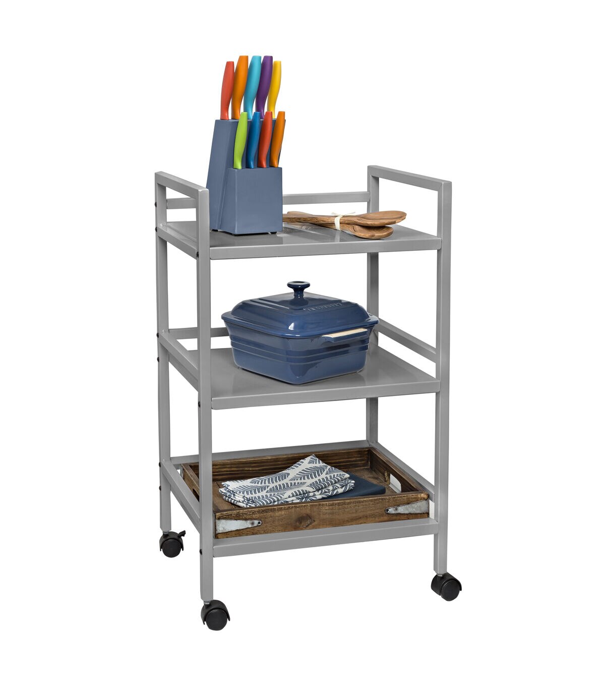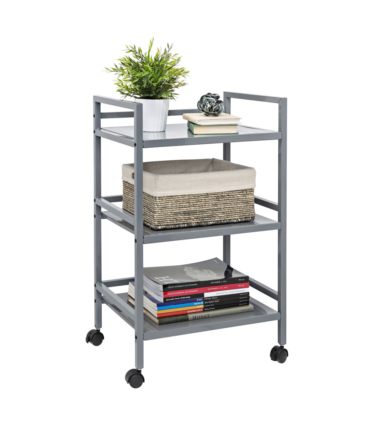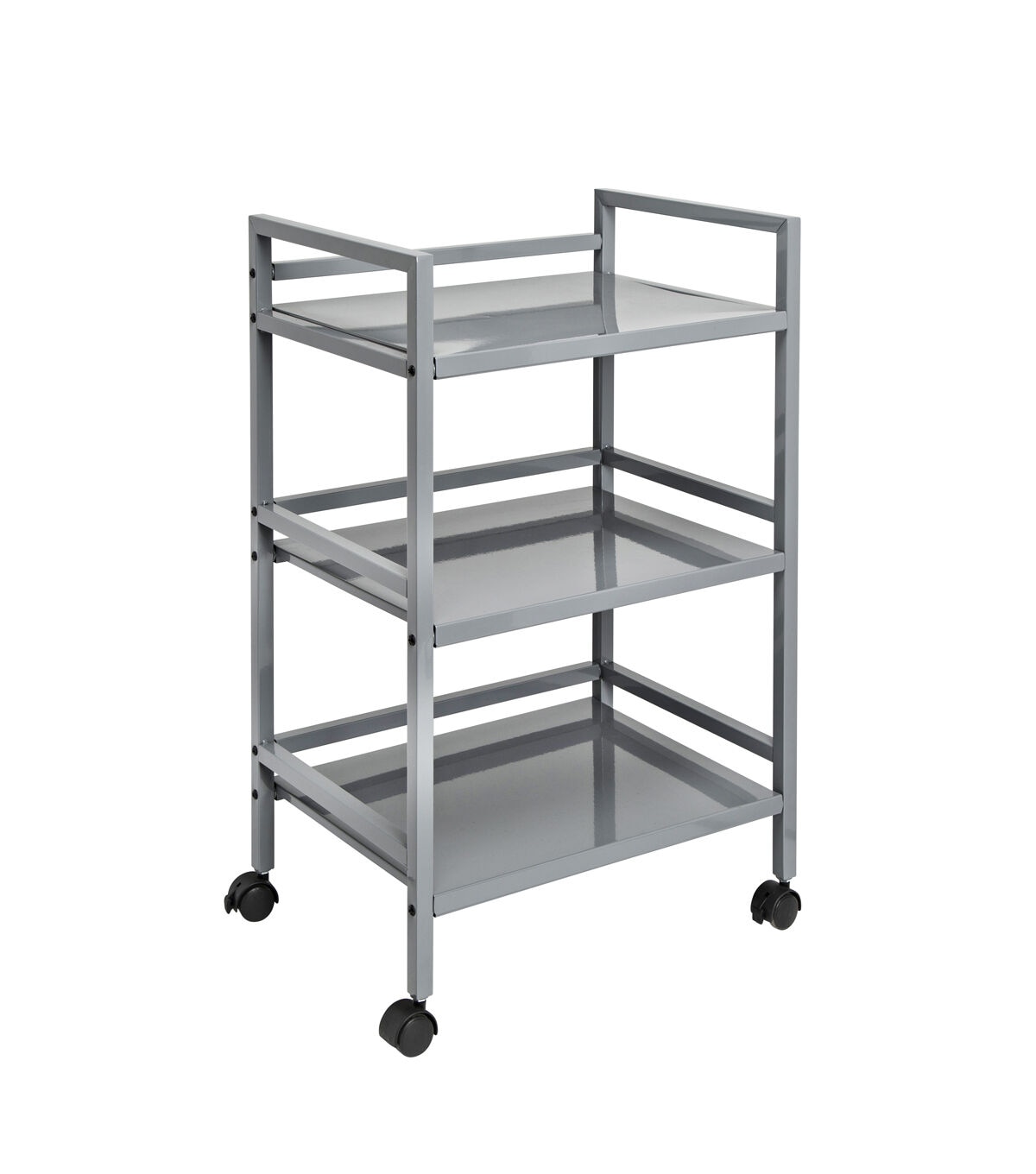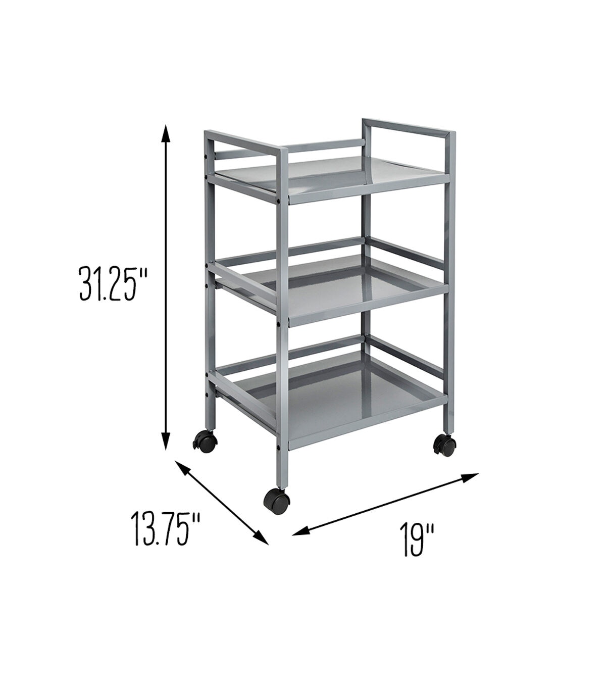 Honey Can Do CRT-03091 3-Tier Metal Rolling Cart, Gray. Easy to transport with plenty of storage space, the Honey Can Do CRT-03090 3-Tier Metal Rolling Cart, White will allow you to transfer your items from room to room with ease. Features four casters for smooth mobility, with two lockers to secure in place when necessary. Sturdy metal shelves can withstand up to 10 pounds each.