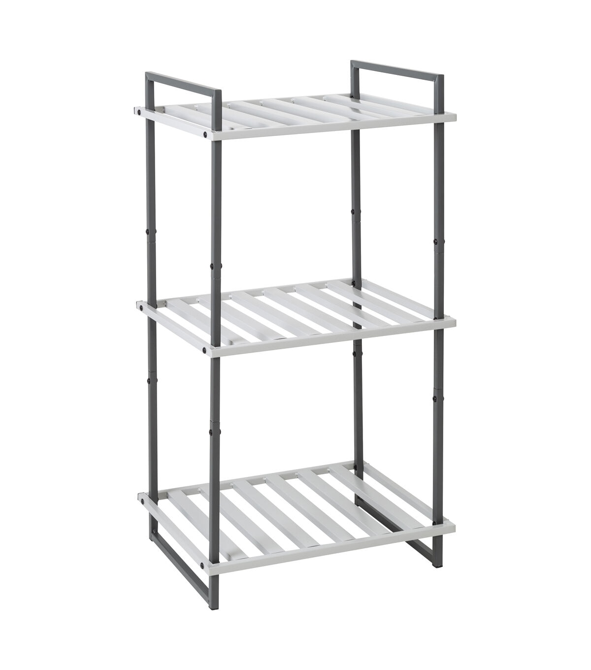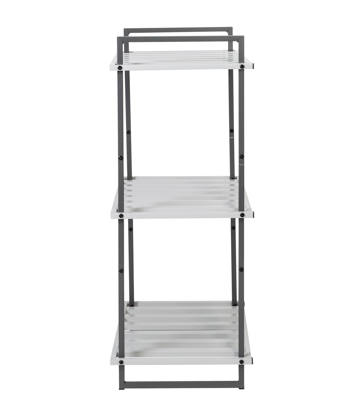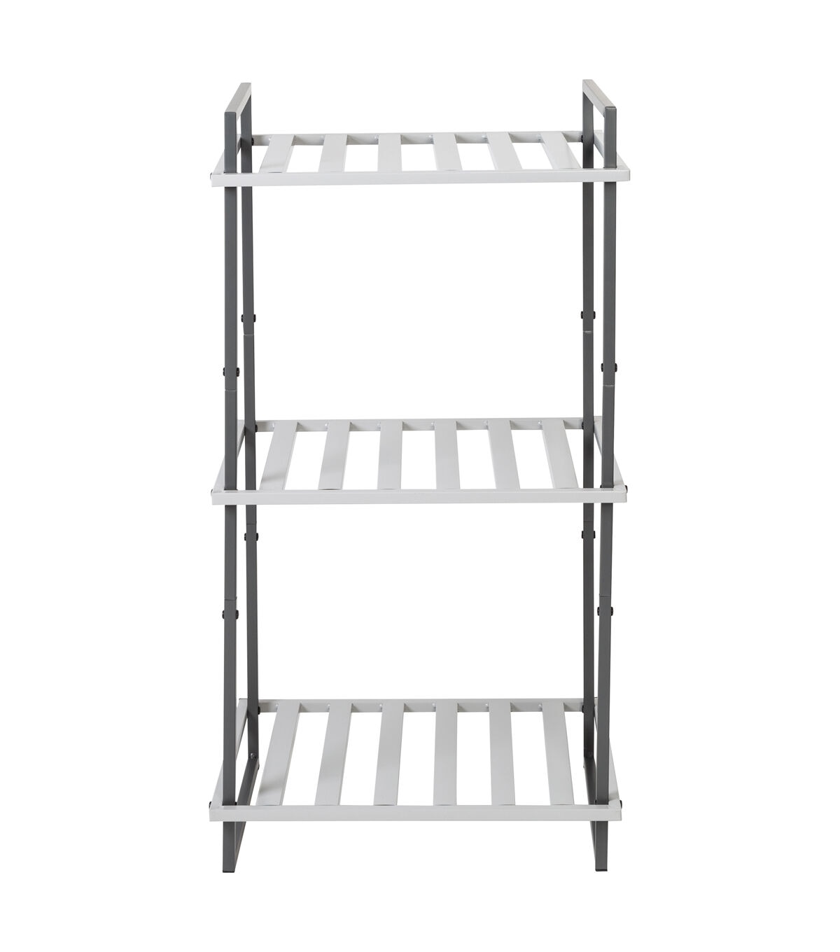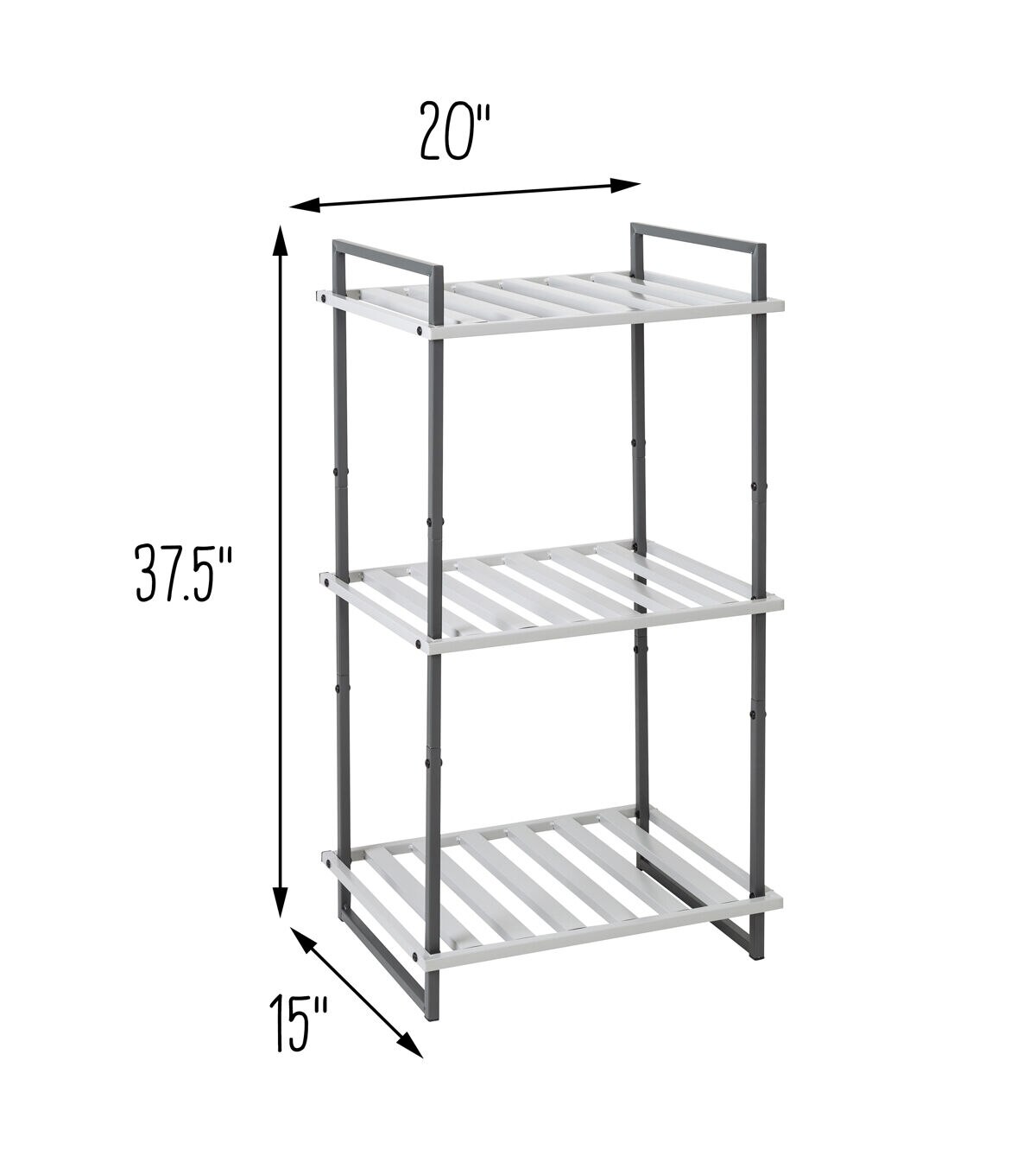 We’ve all experienced those panicked moments. Those split seconds when after a glance cast side-to-side, there was no sign of a fresh roll of toilet tissue. Escape those brief moments of terror with this metal bathroom shelf. It’s a stylish and practical home for a woven storage basket that holds nothing but spare TP. No cabinets to search, no closets to explore. With three slatted metals shelves, what you see is what you get. And for this bathroom shelf, what you see is a contemporary metal tube design finished with cool contrasting gray tones. It’s a piece that’s subtle, yet hard to miss, which is pretty clutch in the case of certain bathroom essentials.