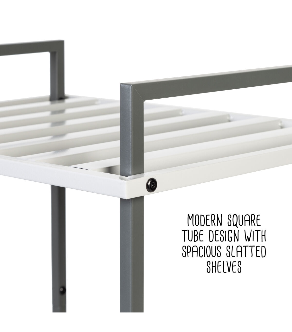 - Sturdy steel construction holds up to 10 lbs per shelf