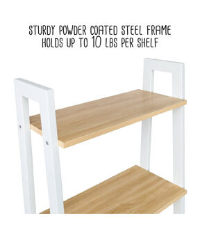 - Sturdy powder coated steel frame holds up to 10 lbs per shelf (50 lbs total)