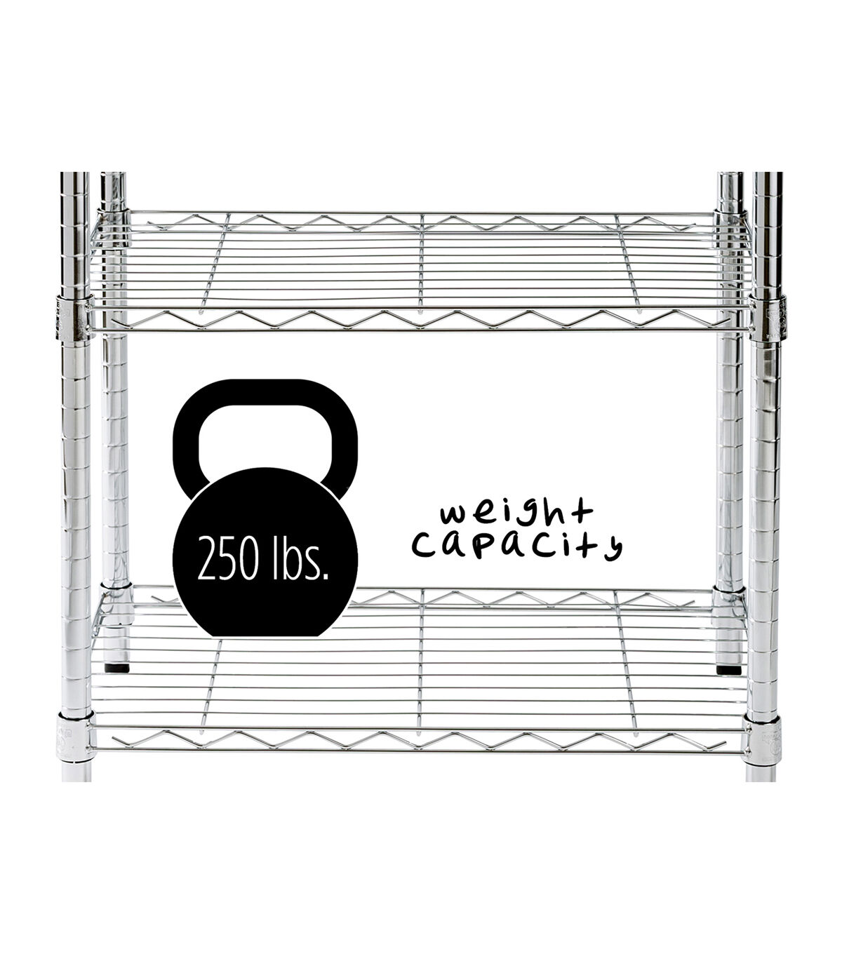 - Holds up to 250 pounds per shelf