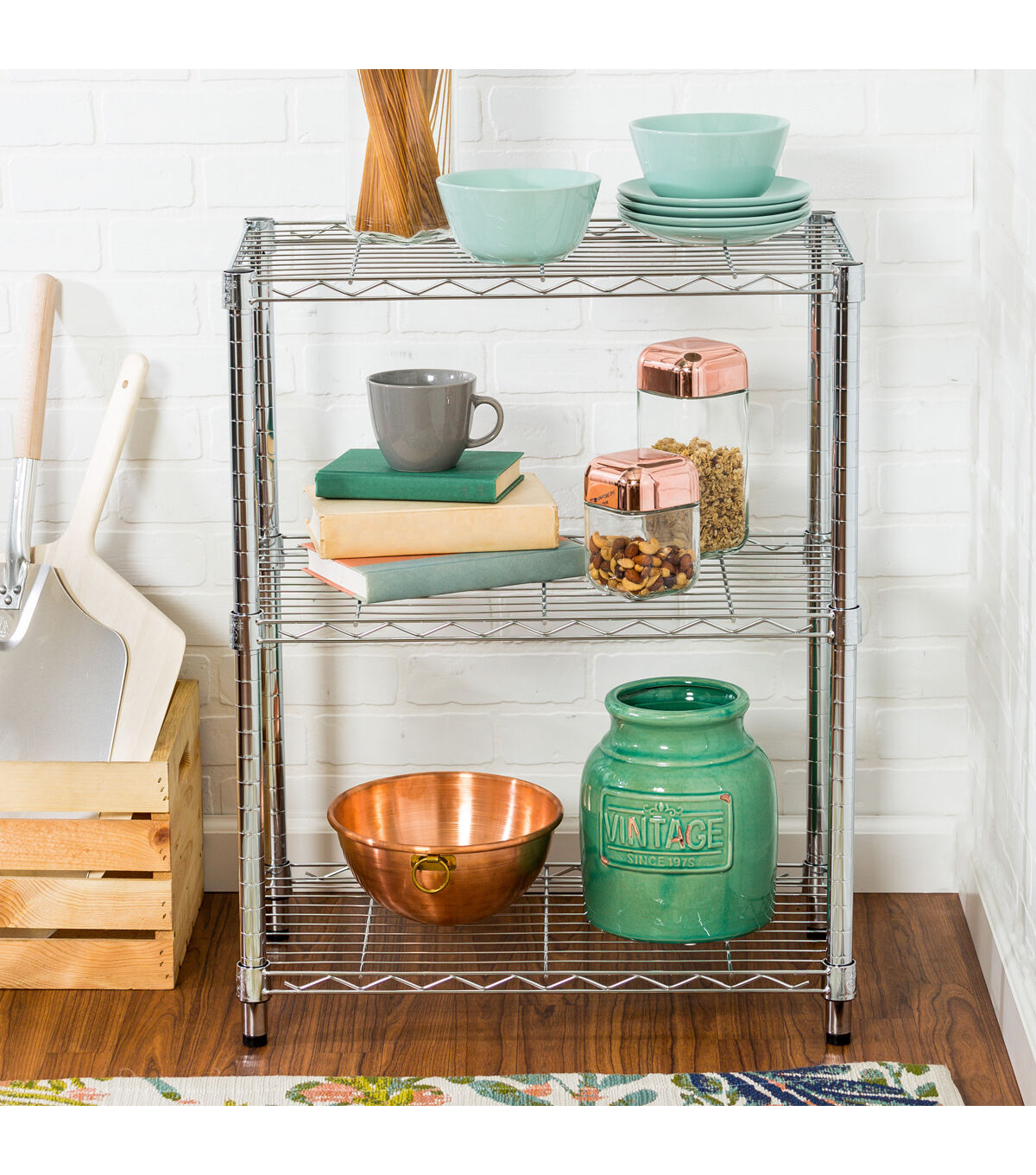 - Chrome storage shelves ideal for pantry, garage and more