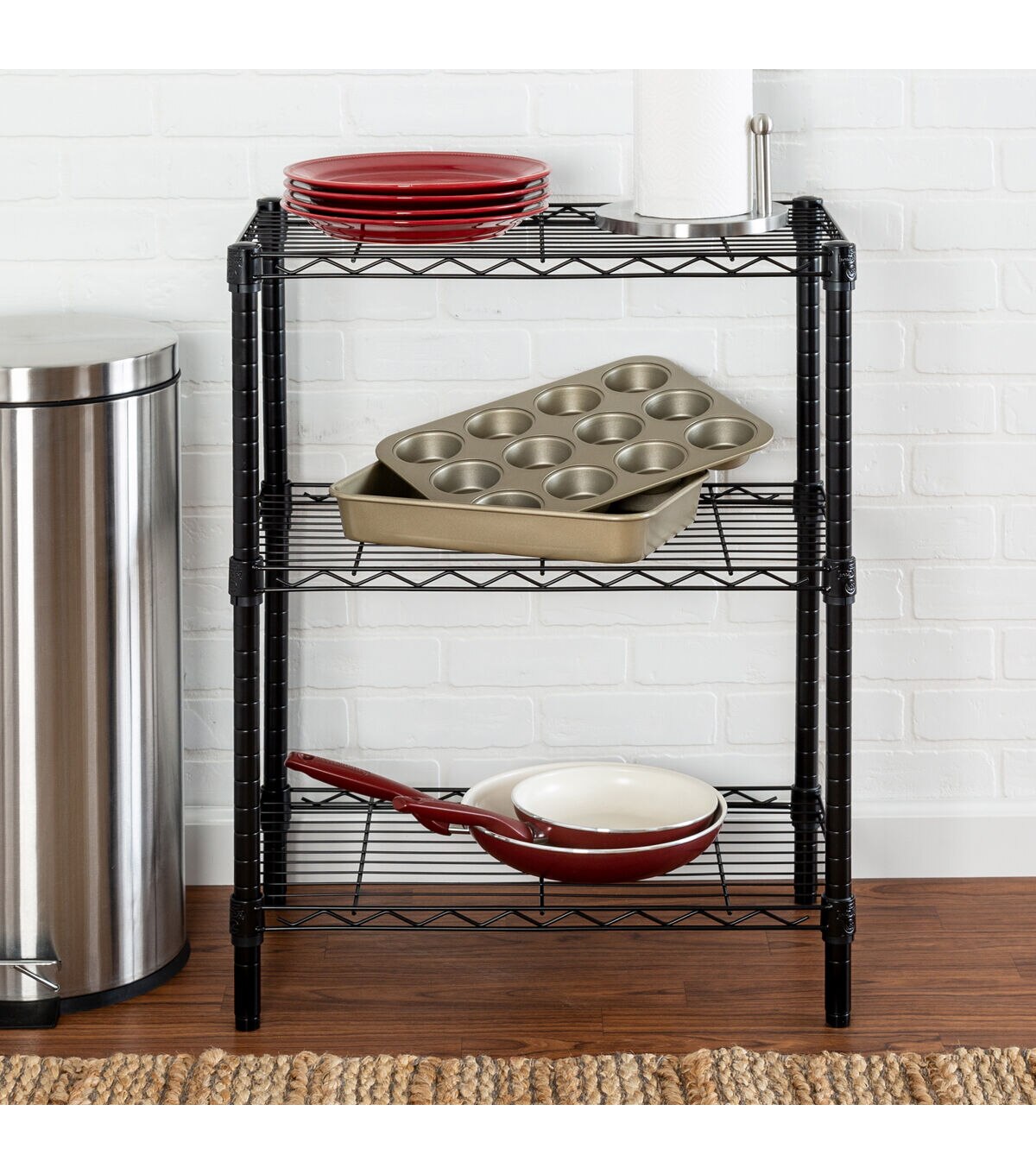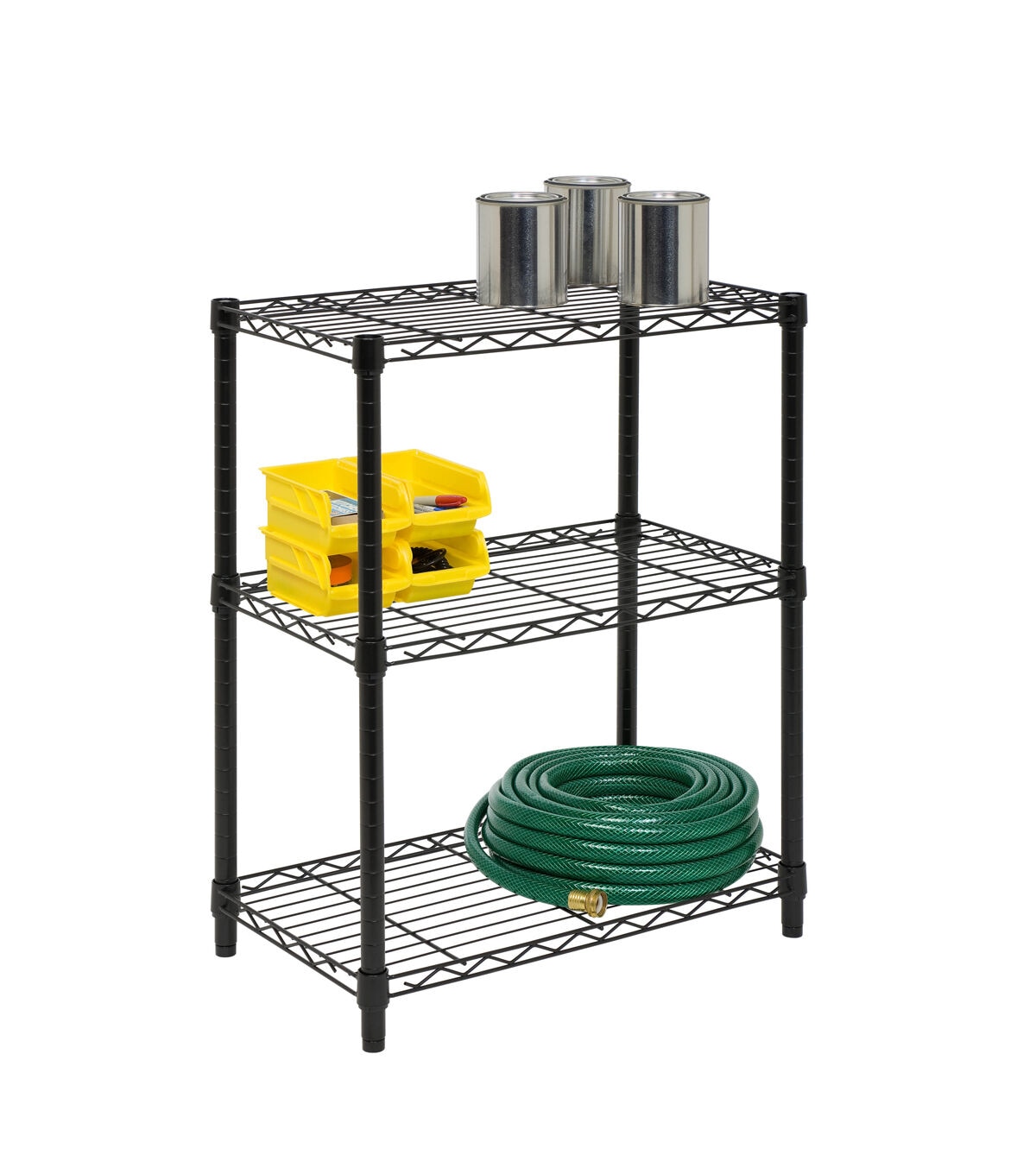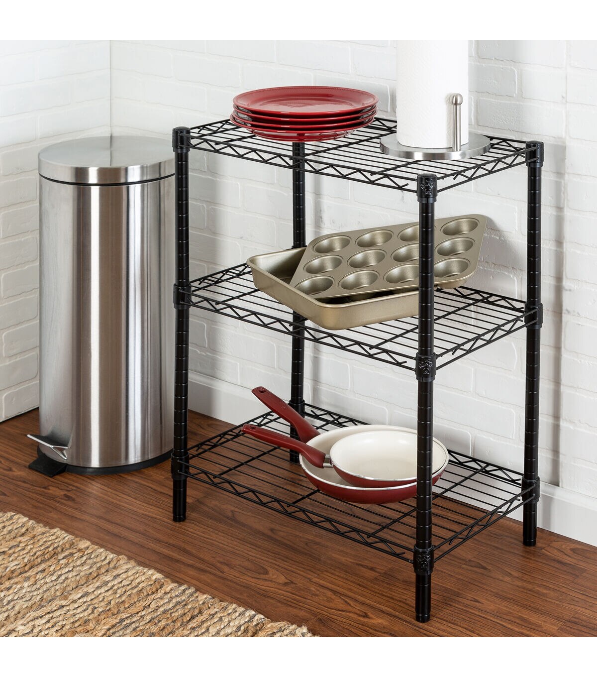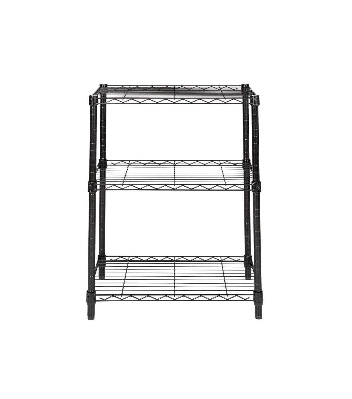 You were looking for new closet storage ideas when your sweaters requested a sit down with you. Not only did they ask you to stop putting them on hangers, but they suggested you straighten up your shoe collection, too. That’s when you decided it was time to restore order to your closet with this 3-Tier Heavy Duty Adjustable Black Shelving Unit. Its commercial-grade durability is tough for any of your kitchen shelving needs, or to tame your wardrobe gone wild, while its steel grated shelves allow your garments plenty of breathing room. Easy to assemble and versatile, this adjustable shelving unit also straightens up messes in your basement or garage.