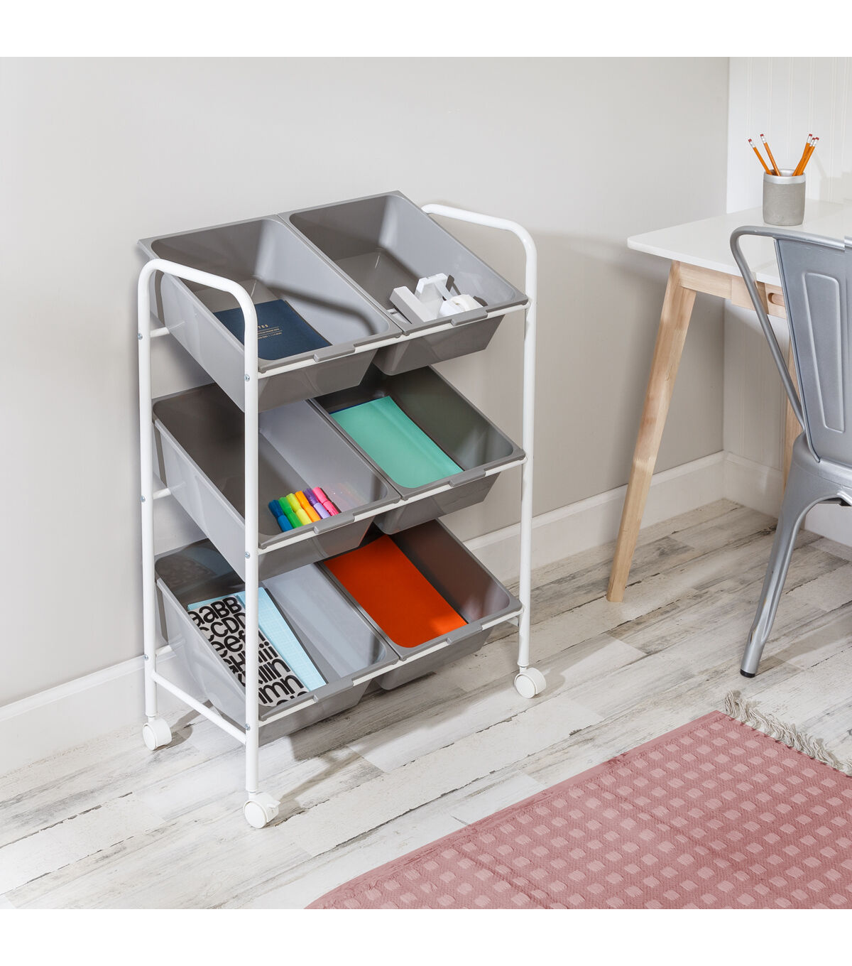 Whether you're filling this cart with arts & crafts supplies, home office needs or even laundry accessories, it gives you plenty of room to organize. Its sturdy metal frame holds six bins that are easily accessible, and the wheels will let you take it wherever you go. The open layout of the cart allows you quick access to whatever it is you're storing inside, and its versatility makes it a one-stop storage shop.